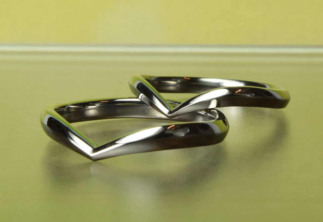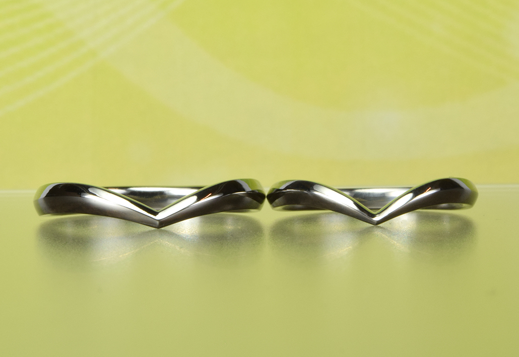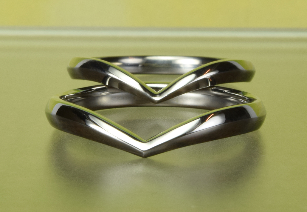 指先をシャープな印象に見せるVシェイプは、結婚指輪の常時人気上位のデザイン。