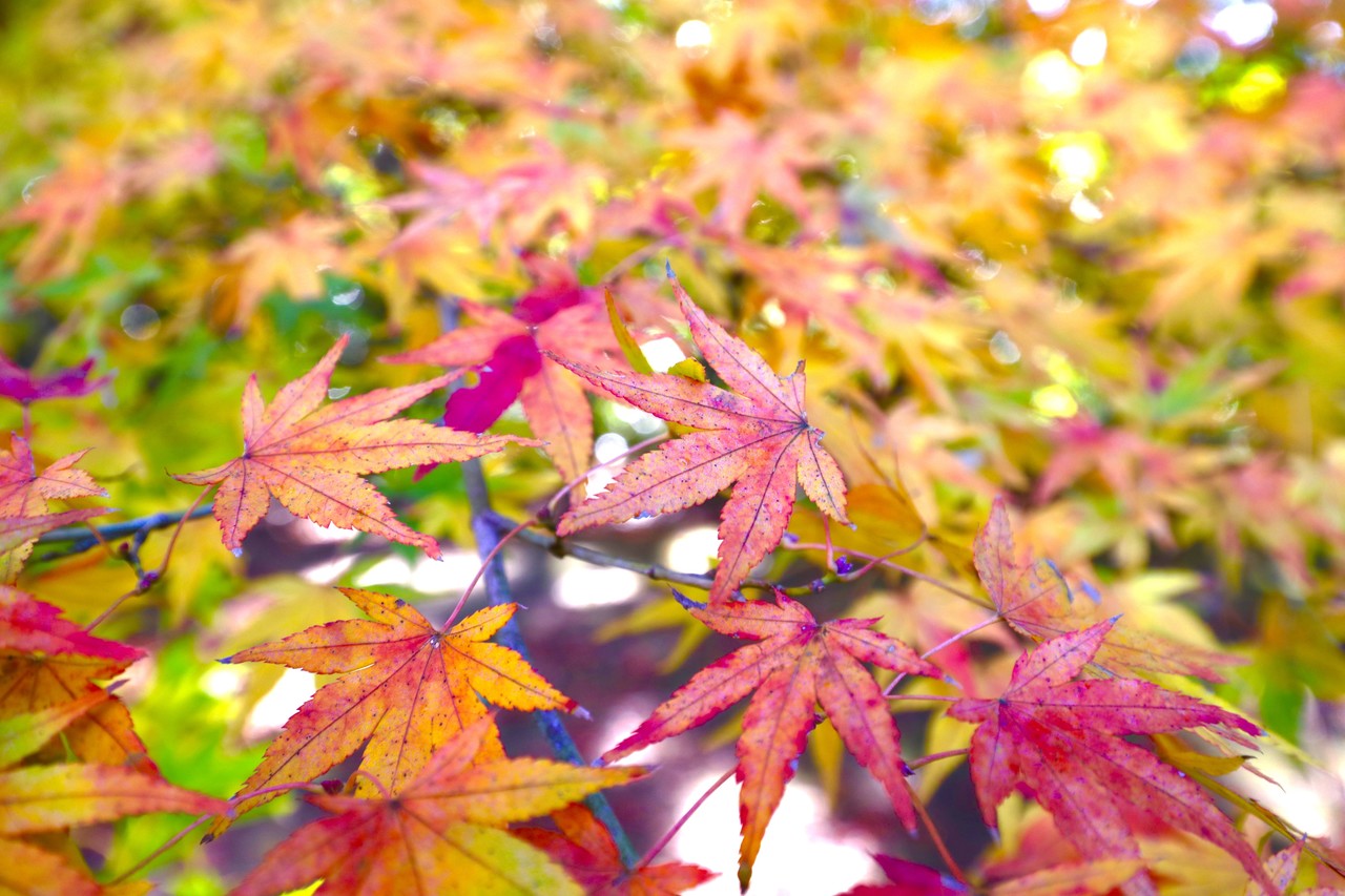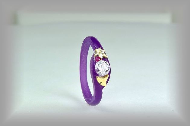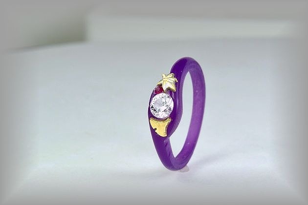 紅葉の葉をあしらいました。イチョウ部分はk18で紅葉の葉は真っ赤なルビーで表現しました。