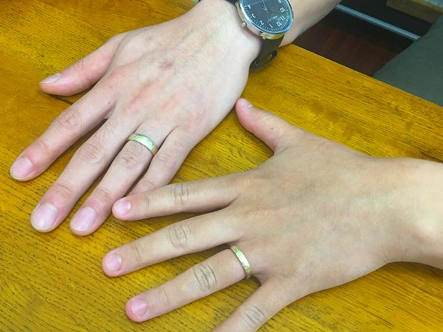 プラチナ結婚指輪を選ぶ方が多い中 試着繰り返すとK18イエローゴールドが似合っていました。