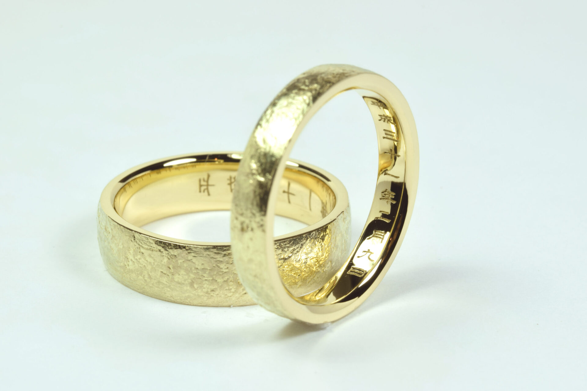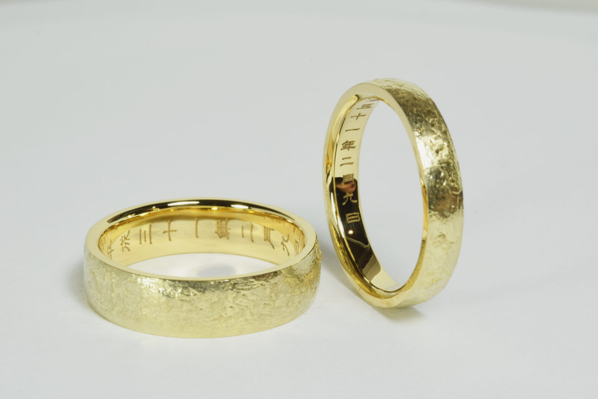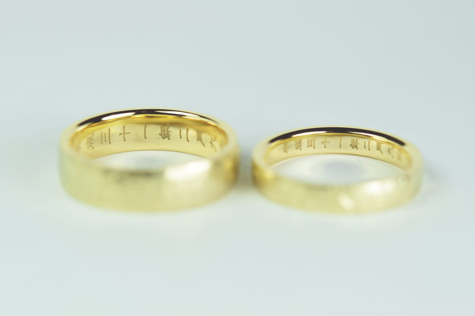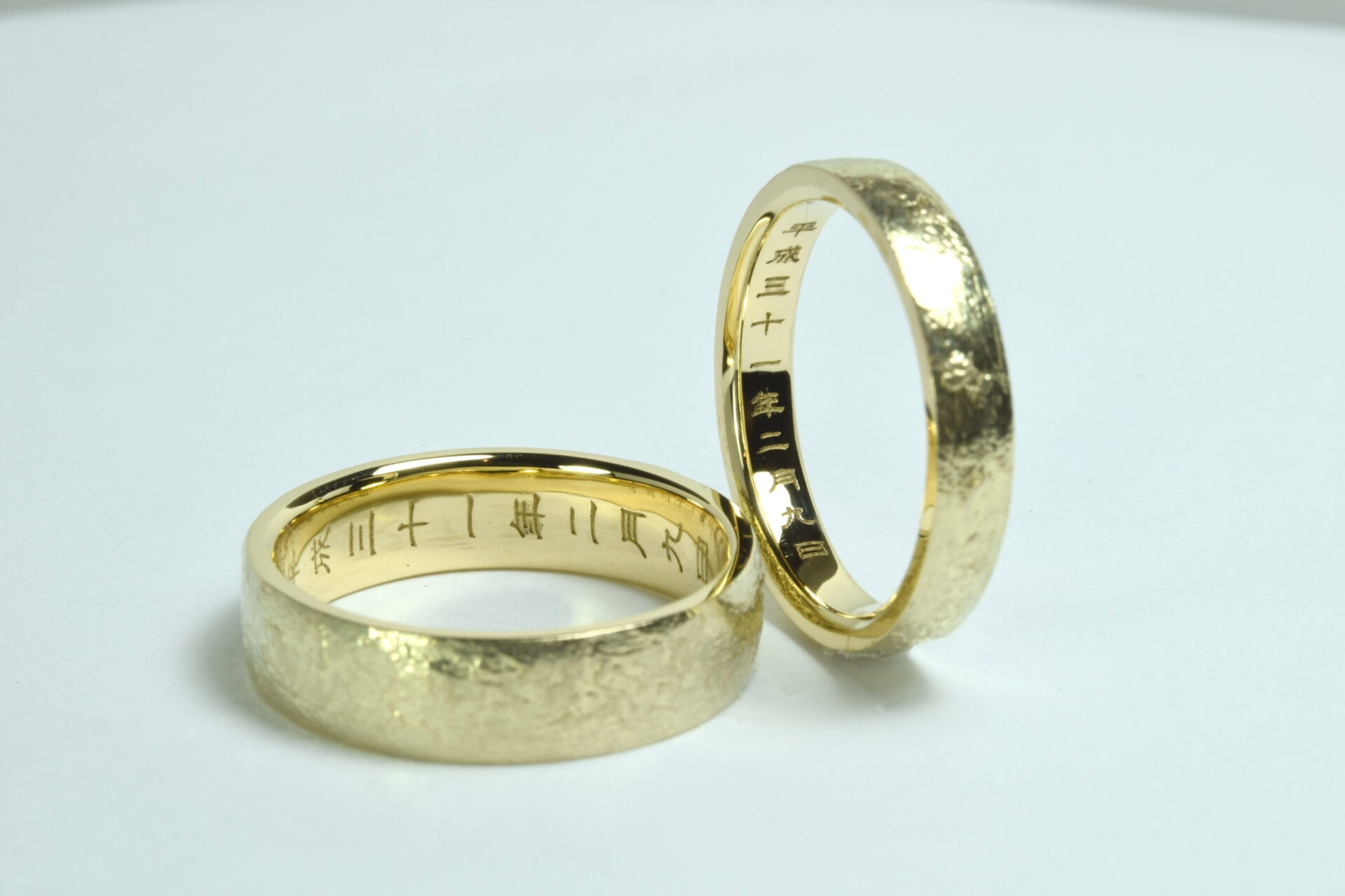 オーダーメイド/K18&和紙柄の結婚指輪に和文字彫刻を入れました。 【O-MA-184】