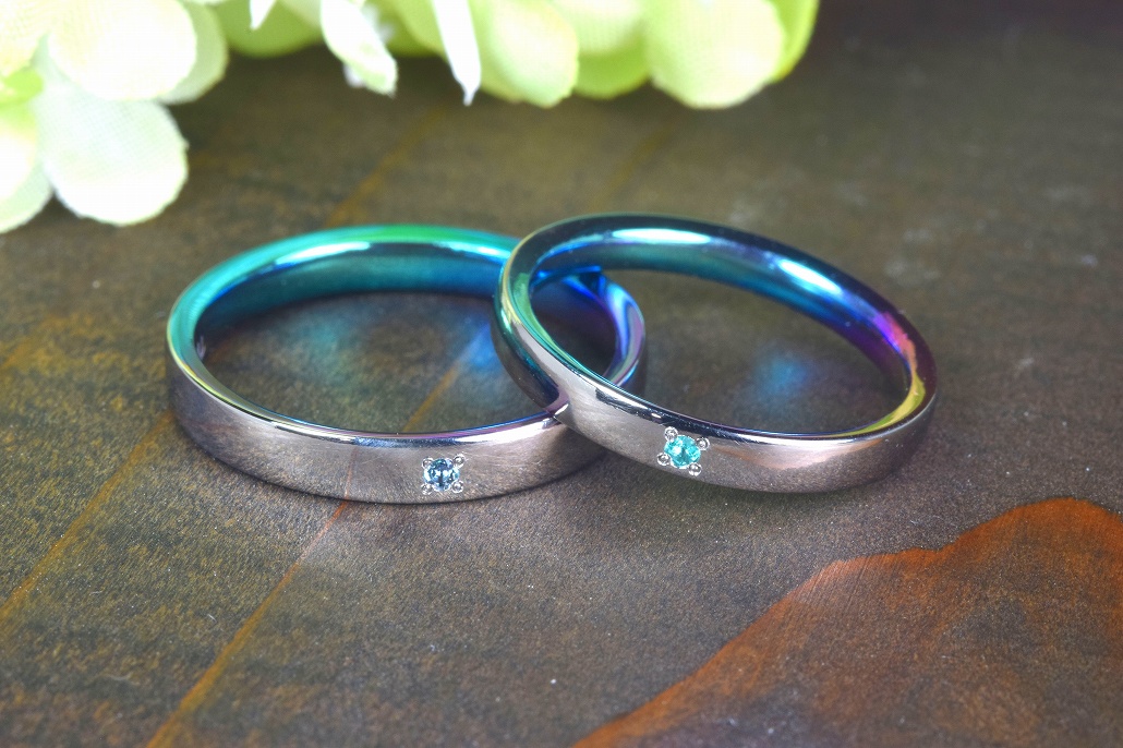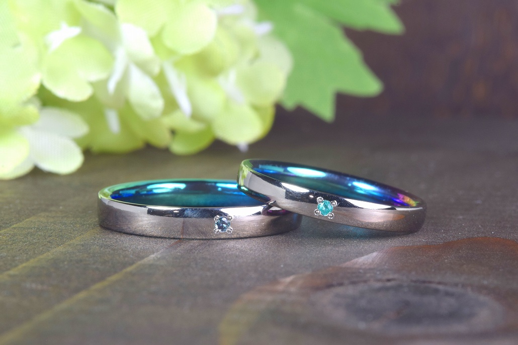 最終的なご決定は、お二人ともジルコニウム素材で誕生石は希少石を入れる事になりました。
