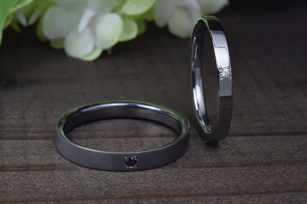 彼は全くアレルギーなどないのですが実は今まで指輪をつけたことがないのでわからないのです。それなら同じようにアレルギーフリーでしかも色がブラックの結婚指輪がかっこいいかな!と思っているんです。と彼。