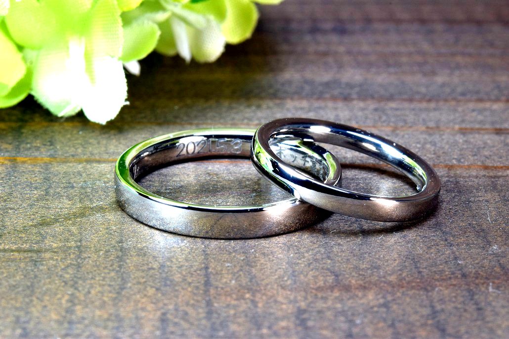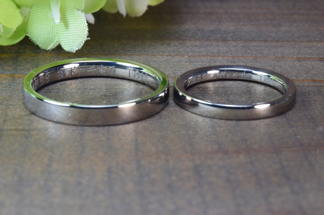 最終的なご決定は、お二人ともジルコニウムの結婚指輪で内側に第一希望の想い出の場所の刻印が入った納得の結婚指輪となりました。