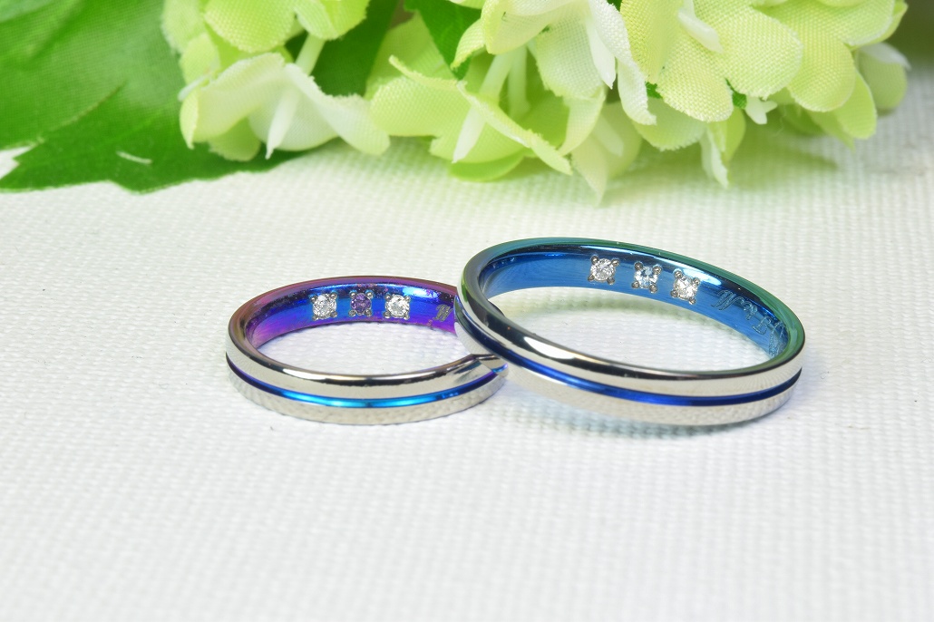 青の結婚指輪(アレルギーフリー)【O-MA-340】