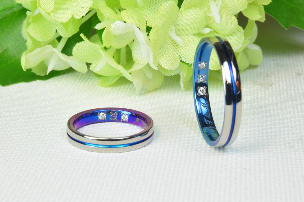 大体の場合はグラデーションを選ばれる方が99%ととても人気があります。しかも好きなグラデーションを選べる形にしておりますのでお二人だけの色を出すことができます。年数がたてば指輪に傷がついたりしますので色落ちは発生いたします。しかし後日同じ色もしくは違う色での再発色が可能です。