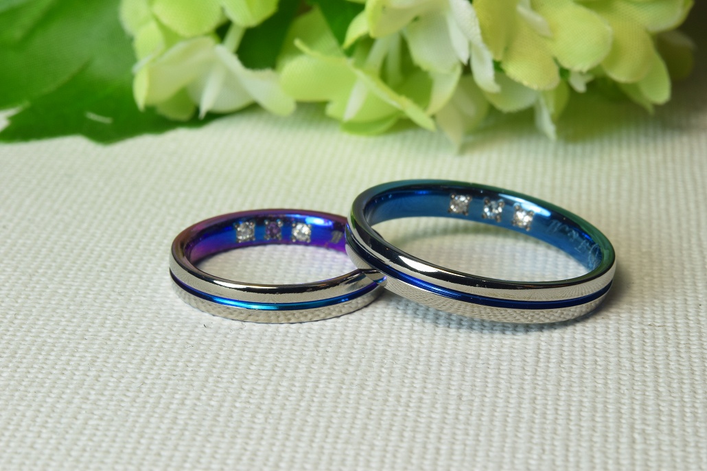 青い色が入った結婚指輪が綺麗なので一度見てみたいとのご希望でした。