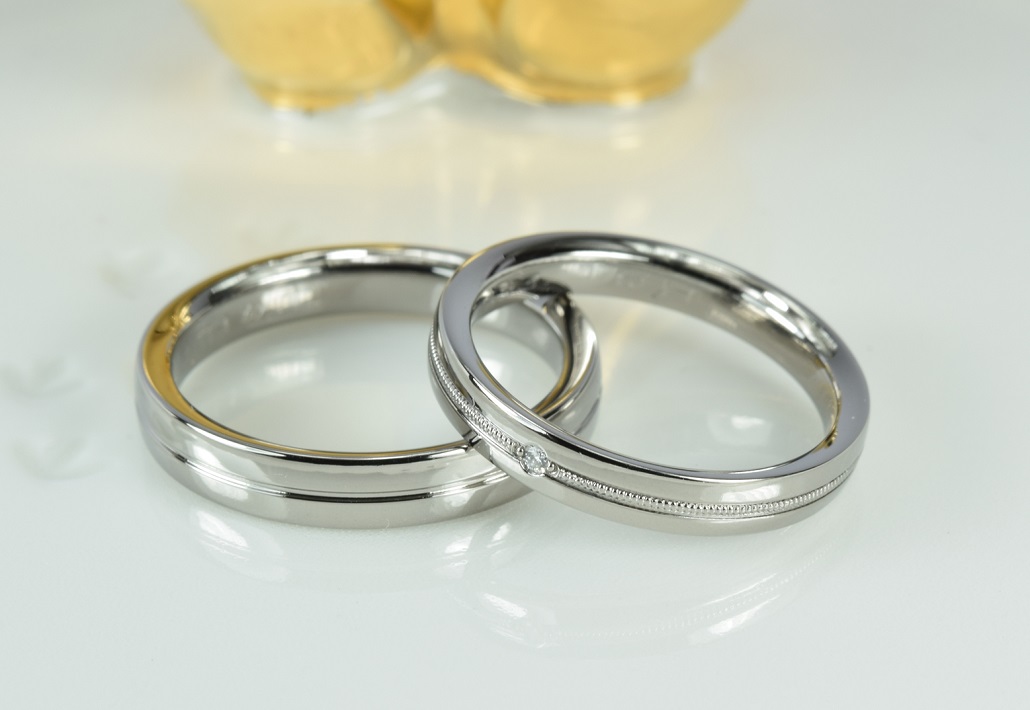 【アレルギーフリーでミル打ちデザインの結婚指輪】