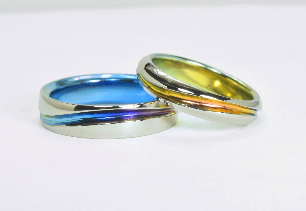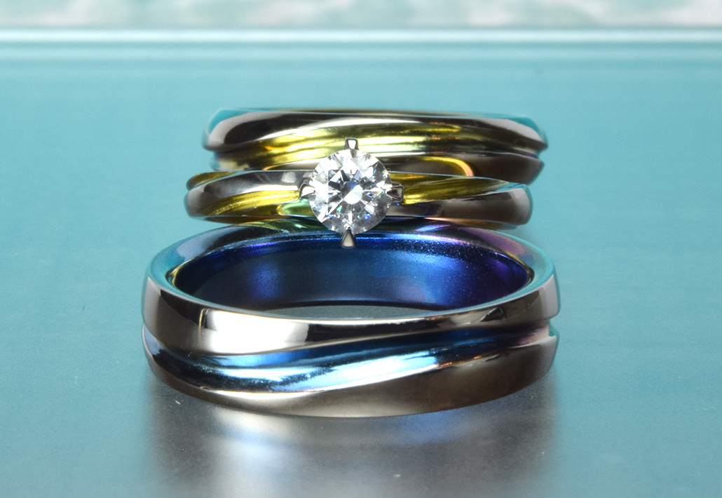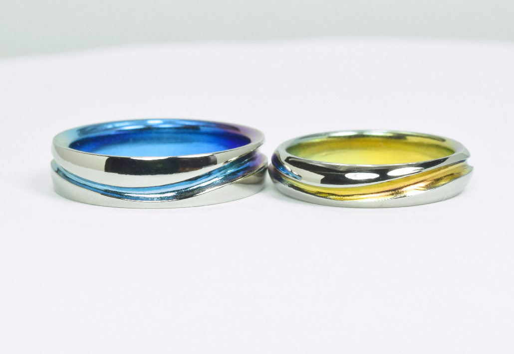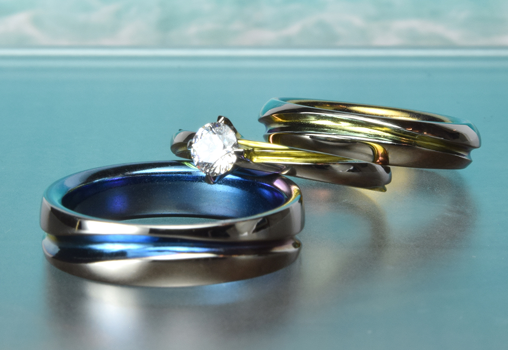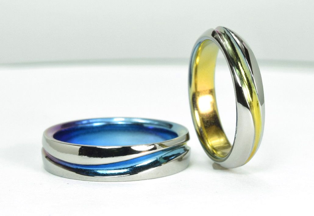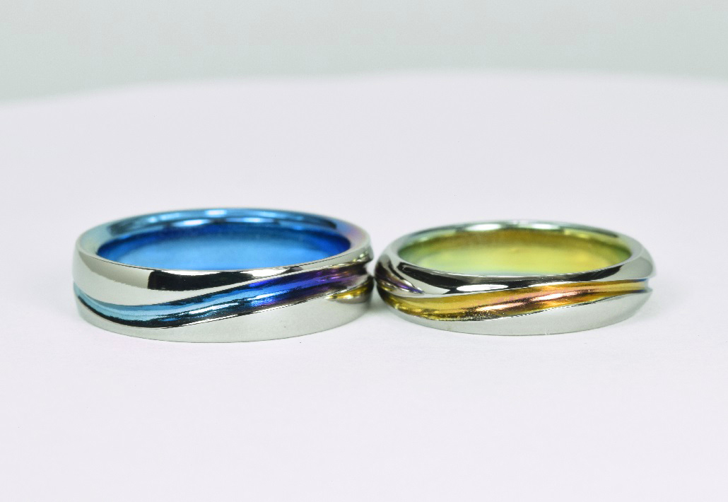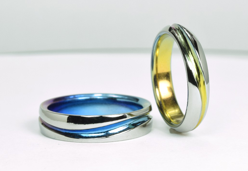 チタンの鮮やかな発色は、輝きあふれる景色、お二人の未来への希望をあらわすのにピッタリ。
