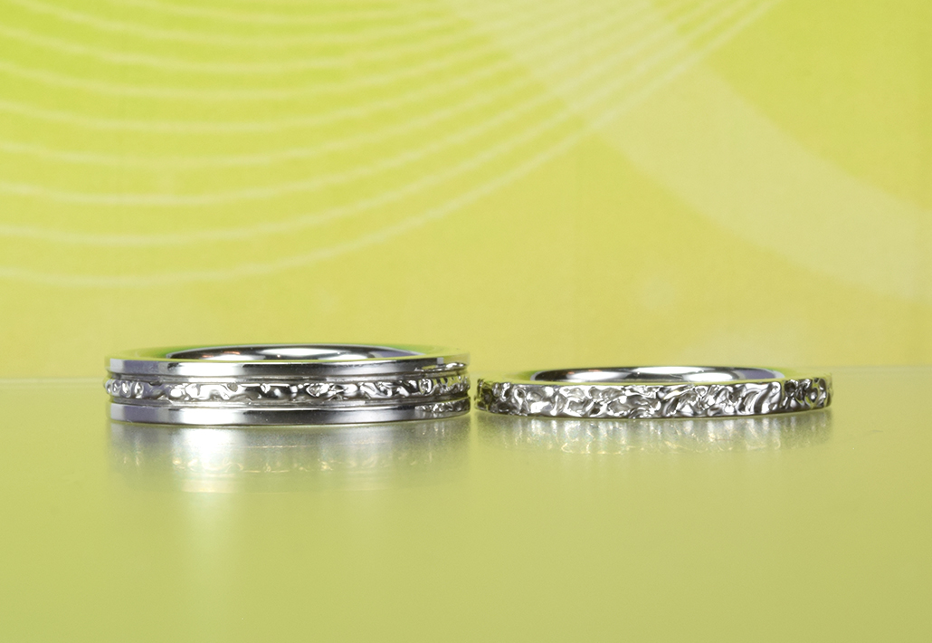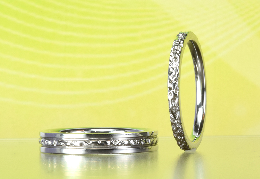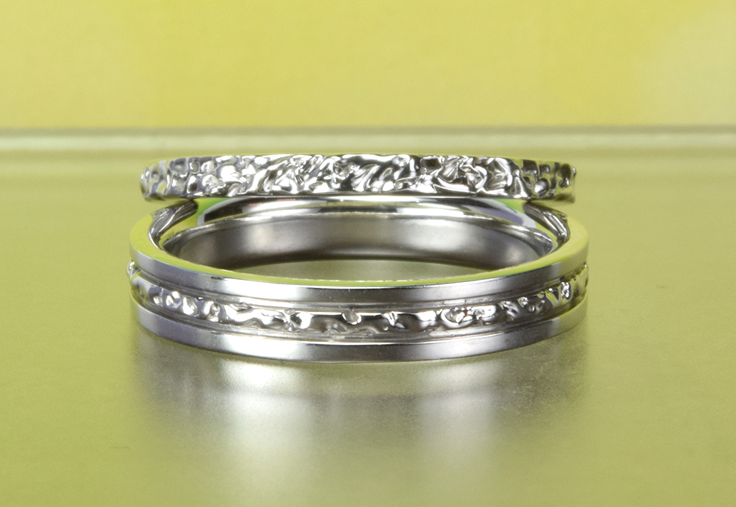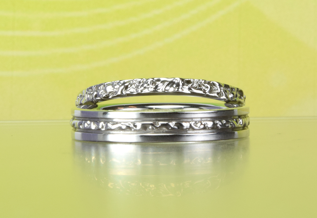 そのため二本同じ模様のリングは無く、どれもがその時一回かぎり、オンリーワンの仕上がりです。