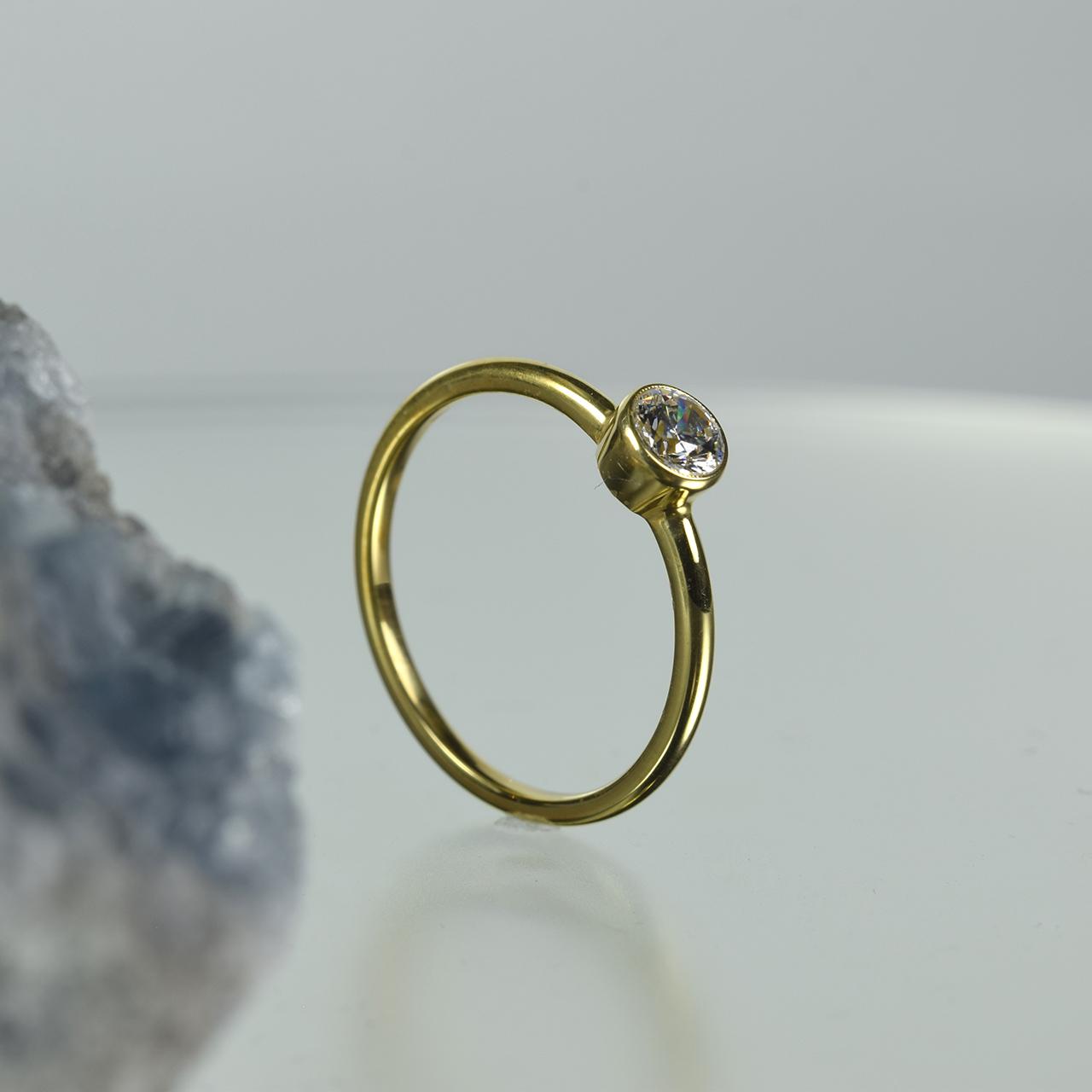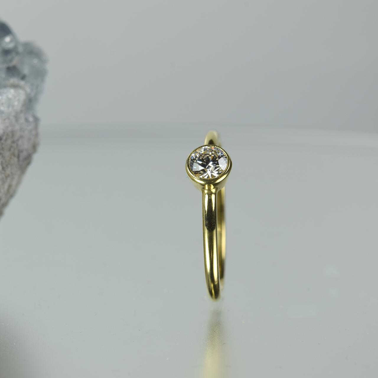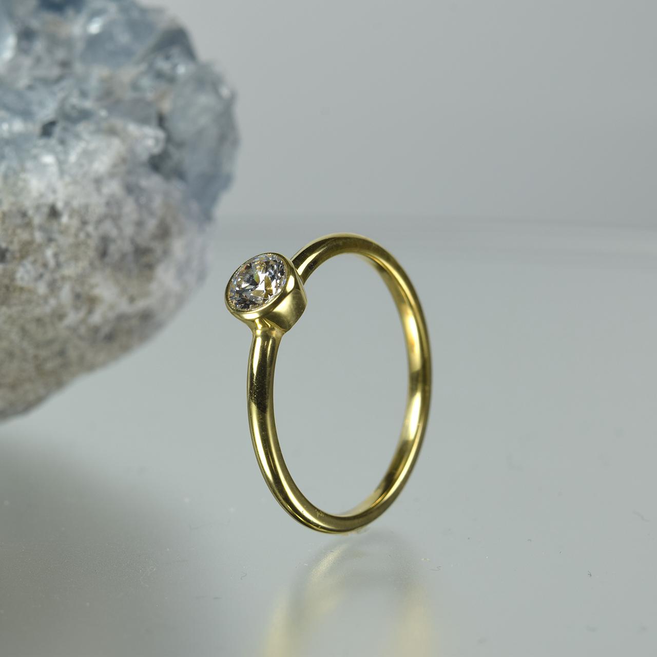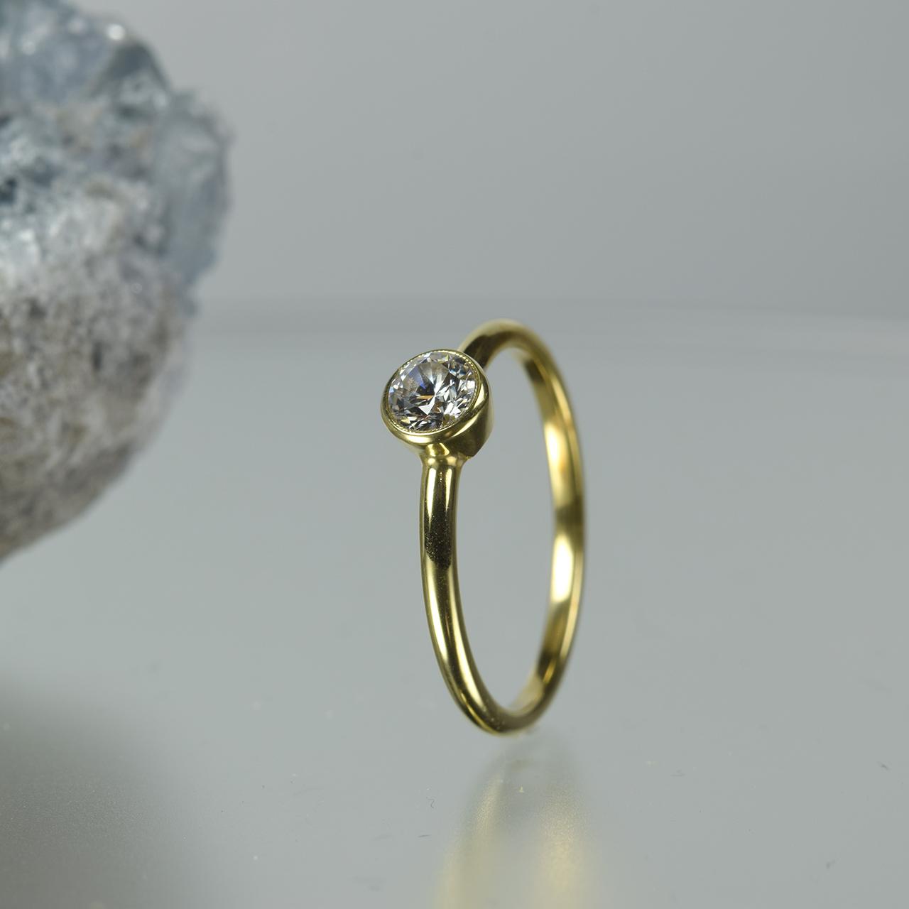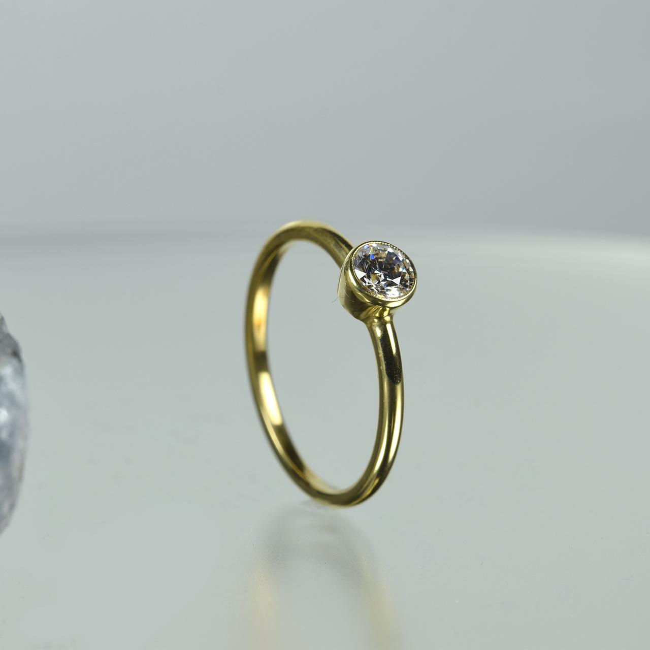 ・石を優しく守るフクリン(石のまわり一周を地金がおおうようにセット)留めは、ルースを優しくガードする安心感、見た目にも柔らかい印象が人気です。