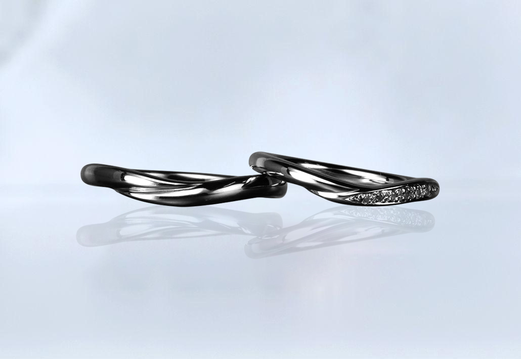最新|ブラックジルコニウム結婚指輪 指が長く見える指輪 ホールド(Hold~包む~)<金属アレルギー対応> MG-037-001
