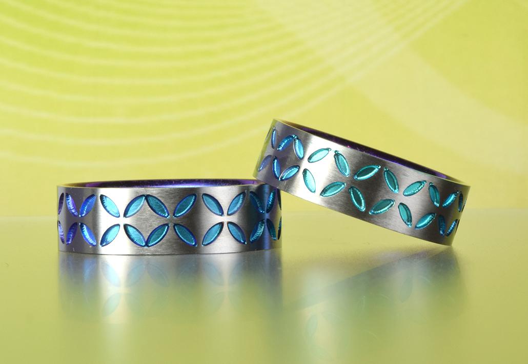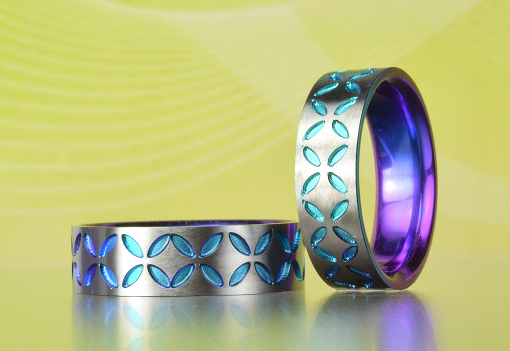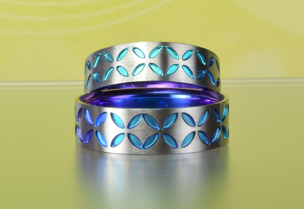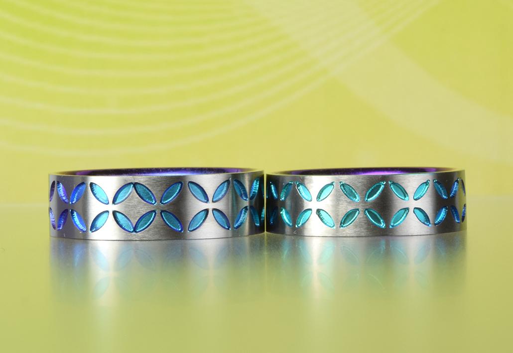 ジルコニウムならではの美しいカラーリングを施した唯一無二の工房オリジナル結婚指輪です。
