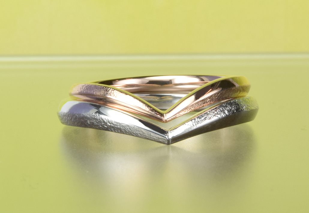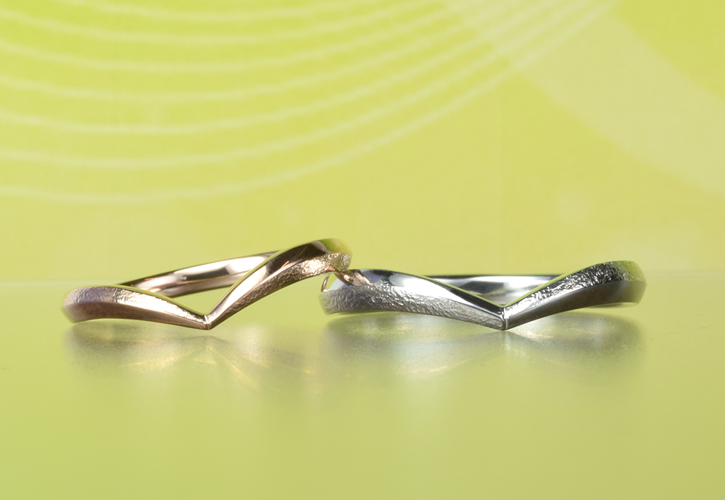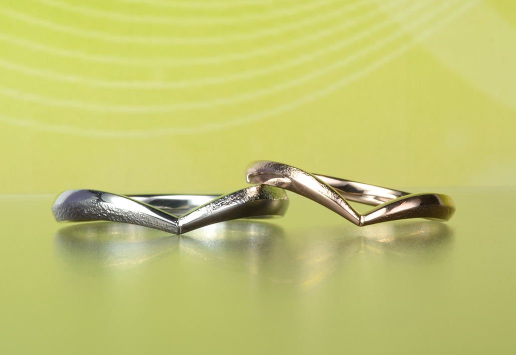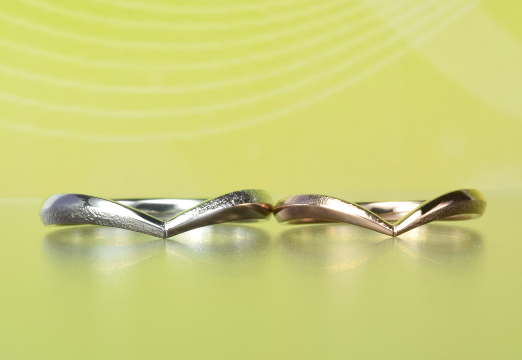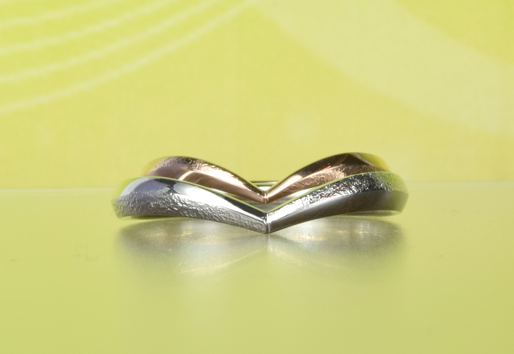 オリジナル結婚指輪|指が長く見えるシリーズ Vシェープ 翼<Tsubasa> <K18&プラチナ> MG-096-002