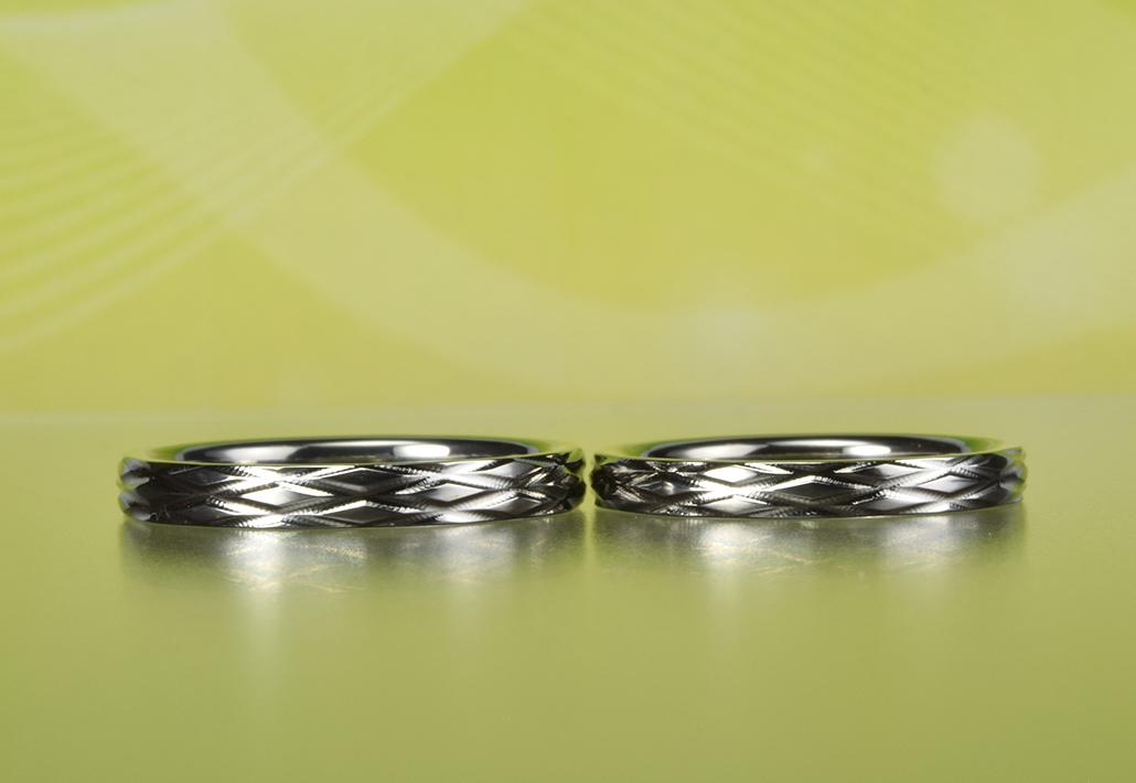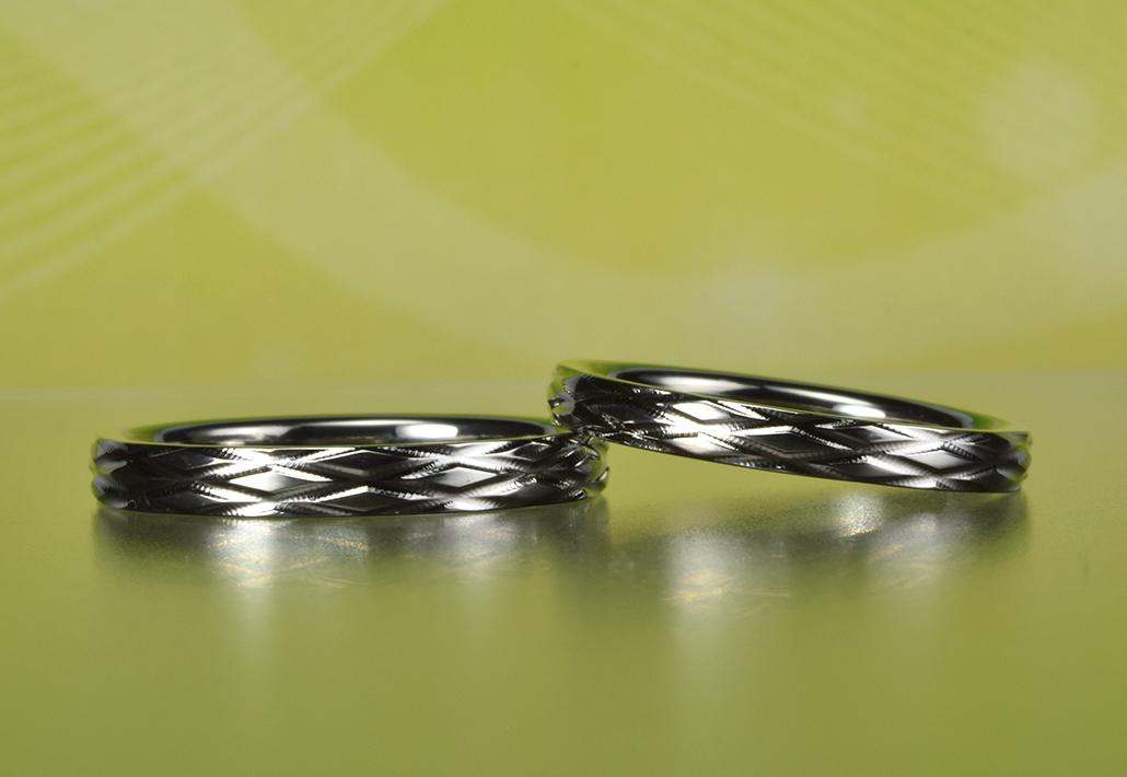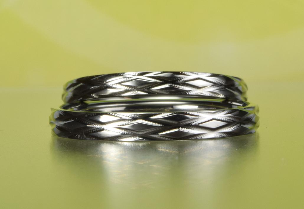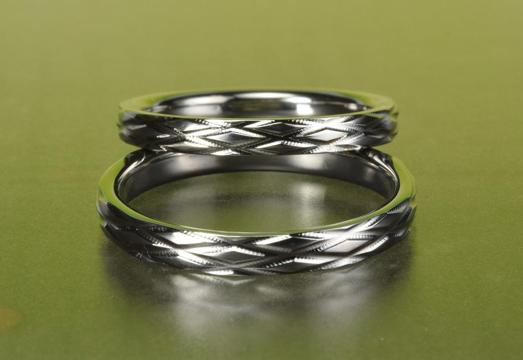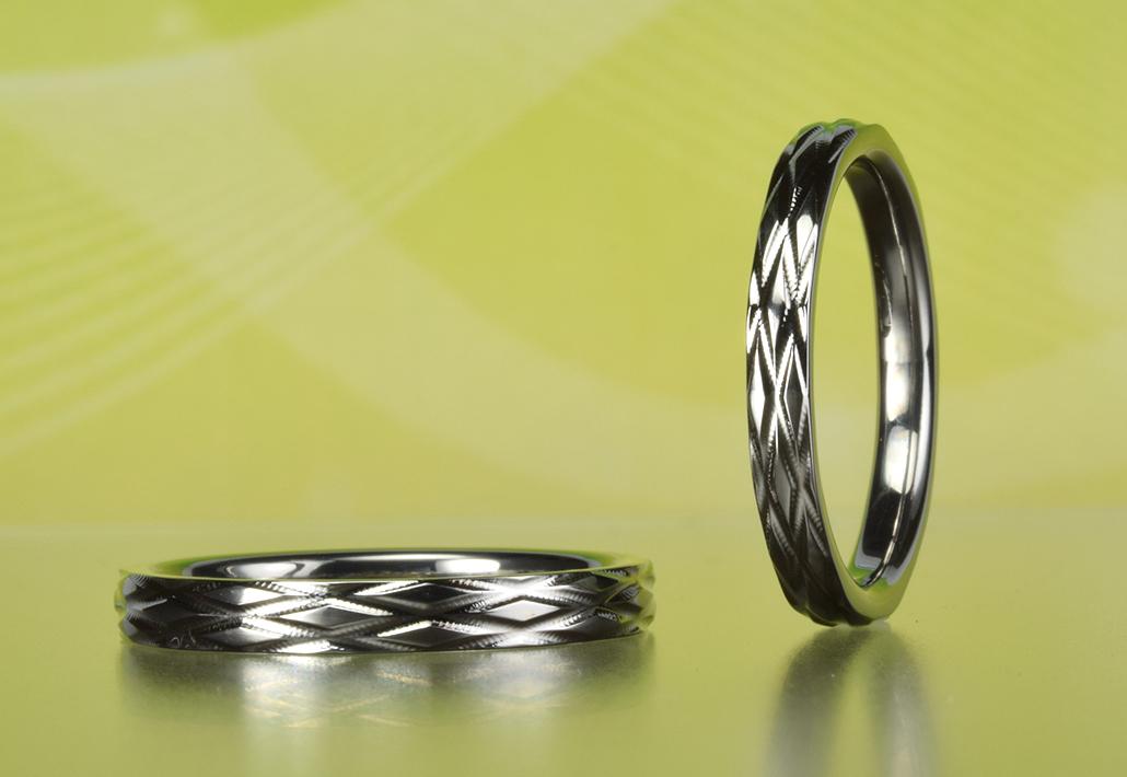 金属アレルギー対応結婚指輪|伝統ある手仕事で作られる植物の葉の形をイメージした柄のリング<KIRIKO~切り子> MG-141