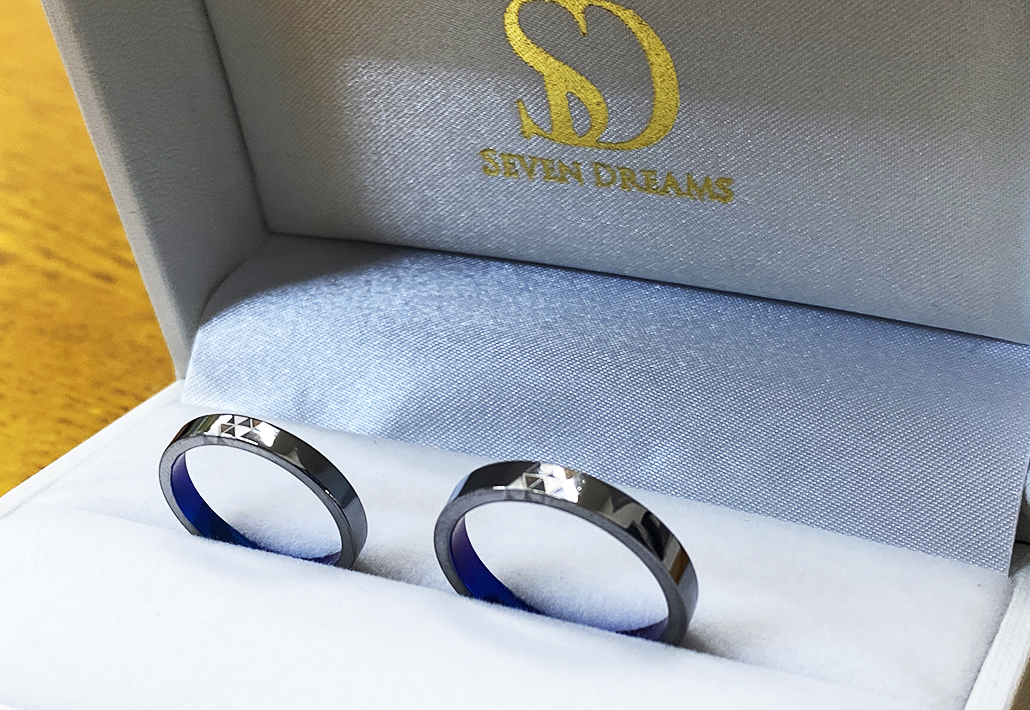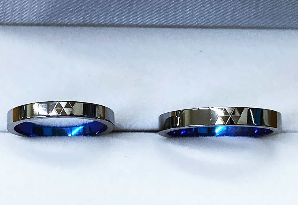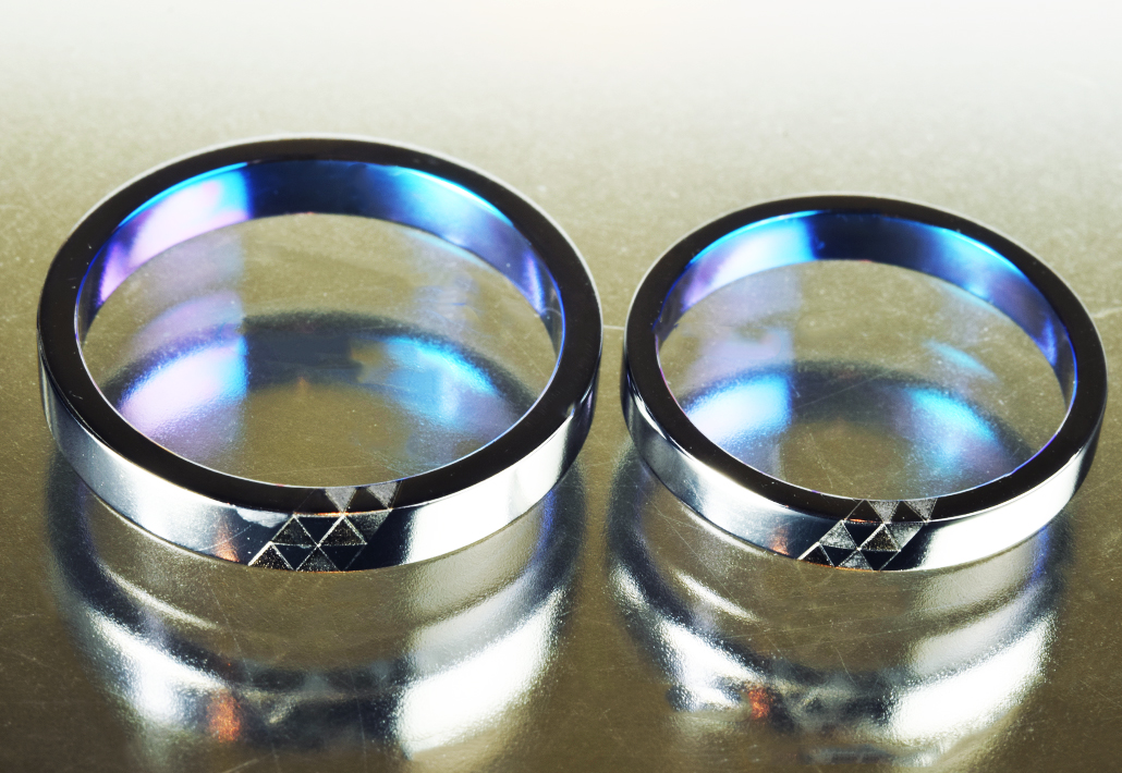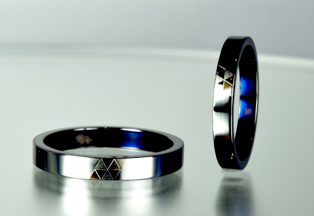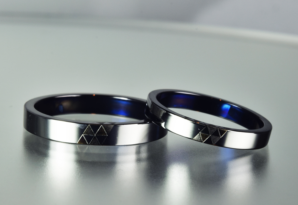 黒いタンタル結婚指輪|お二人を繋ぐ三角の模様 彼のデザインを実現した指輪 [OR-1825]