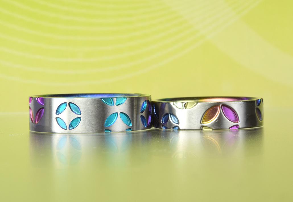 虹色の結婚指輪|七宝紋~chirashi【散し】~カラーあり/和紋様の魅力を伝える指輪<金属アレルギー対応> 【MG-005】