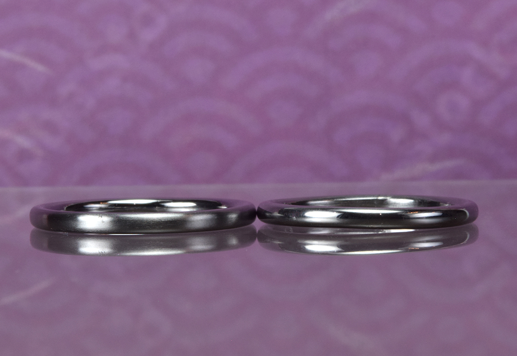 そのタンタルバージョンで、メンズ・レディースともに細身の2㎜幅のペア。