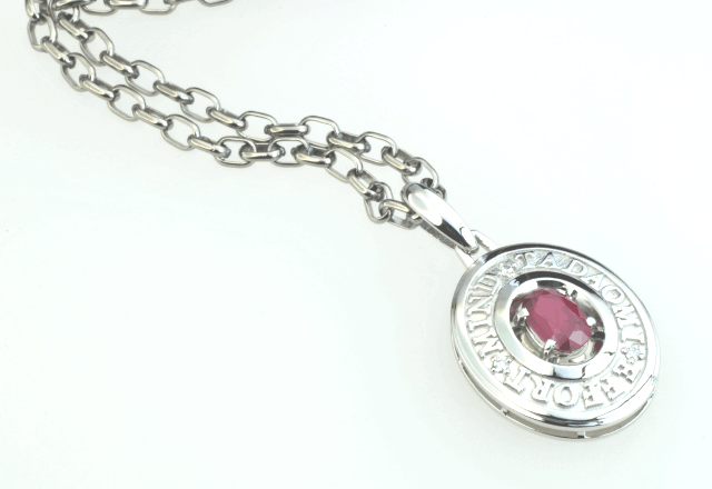 市場に流通するルビーの大多数は加熱処理が施されており、人工的な熱処理によって美しい赤色を実現しています。しかし、このペンダントに使用されているのは、地球の自然な地熱のみで赤く変化した真の非加熱ルビー。ミャンマーのモゴク地方で産出されたこの宝石は、自然が何億年もかけて作り上げた芸術品といえるでしょう。