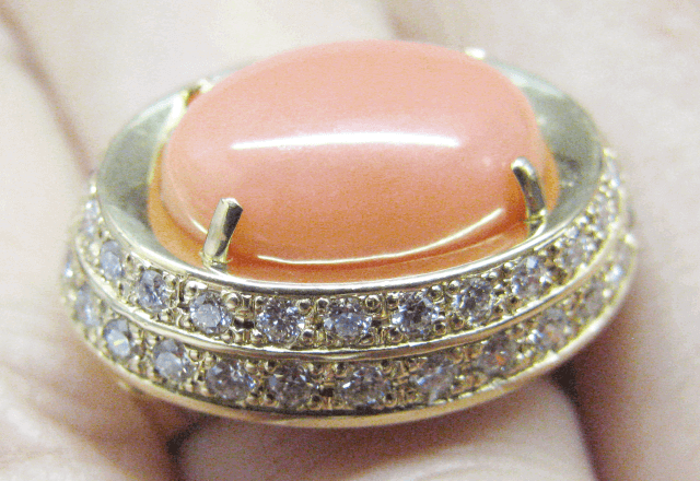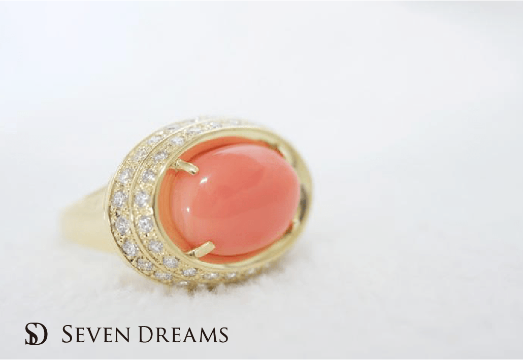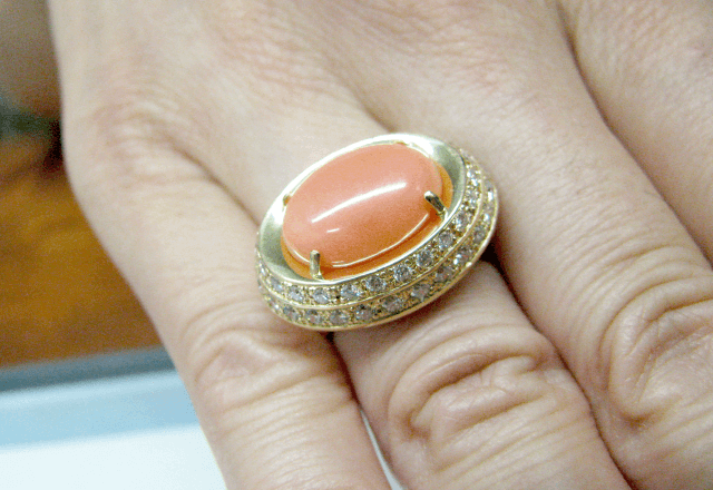トータルコーディネイトの先生をされているセンスある方から のご依頼でした。 カラーコーデネイトを熟知されていますから デザインもすぐにご決定されました。 秋タイプの方でK18とこの珊瑚の石がとてもお似合いに なります。