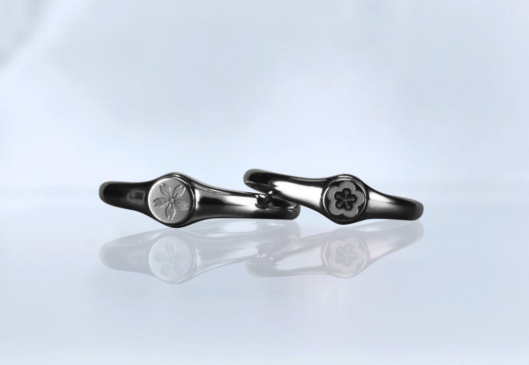 最新|ブラックジルコニウム|シグネット<Signet ring>結婚指輪|/<マイフォーチュン>~桜&梅~SG-001-14-B-S&SG-001-14-B-S