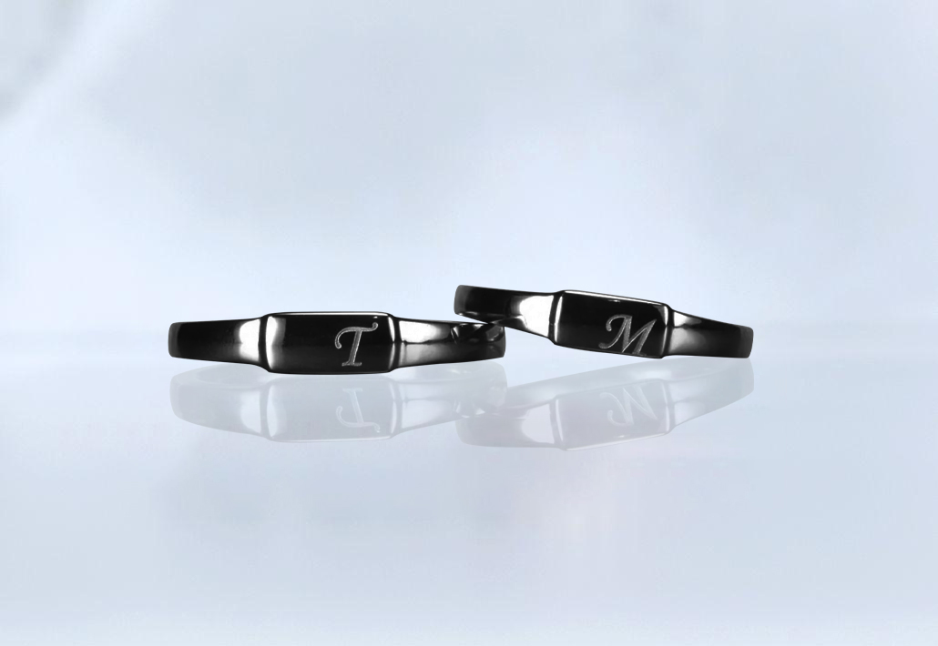 最新|ブラックジルコニウム|シグネット<signet-ring>結婚指輪/スクエアフェイス~イニシャルがかっこいい SG-002ー2B
