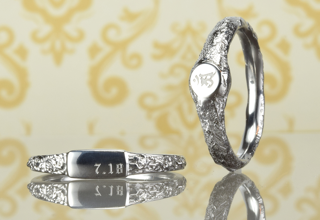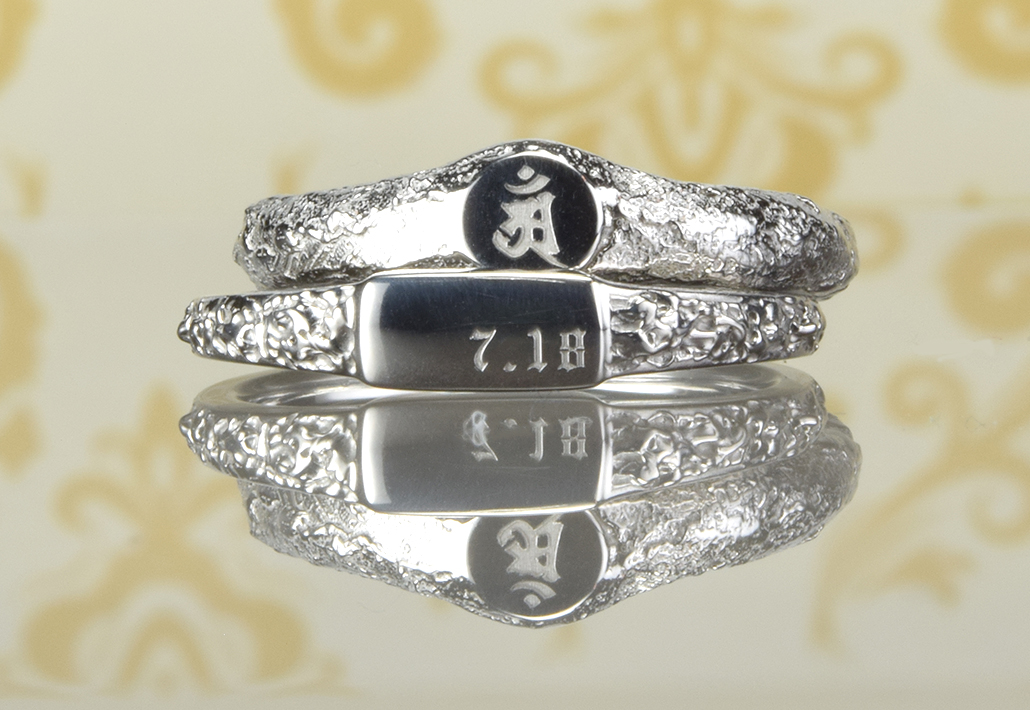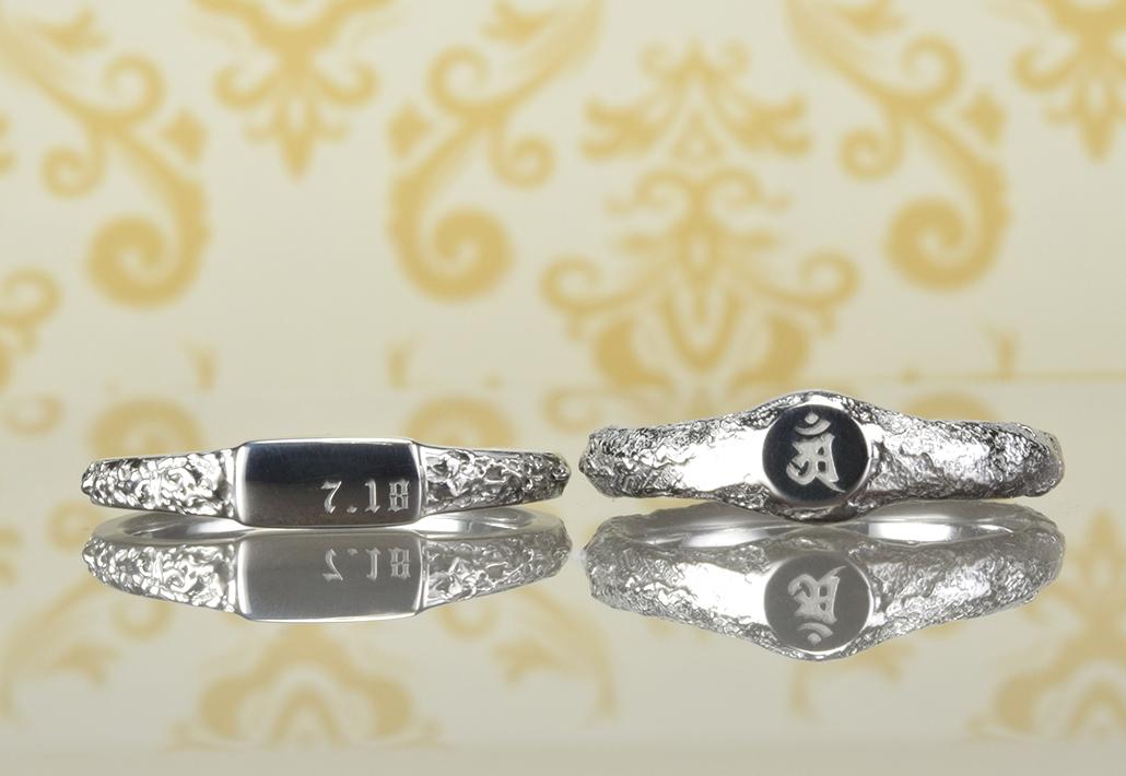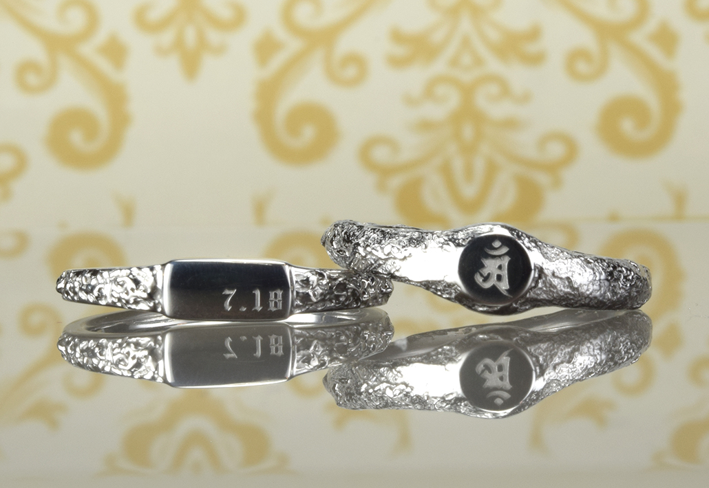 シグネットマリッジ <Signet ring>結婚指輪 シグネットマリッジ/和紙柄に梵字とアース柄に記念日 SG-001-1&SG-002-2