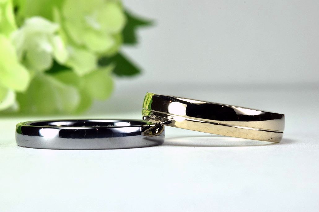 黒と金との組み合わせの結婚指輪はとても上品でかっこいい仕上がりになりました。