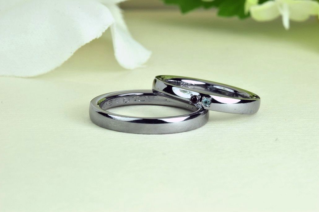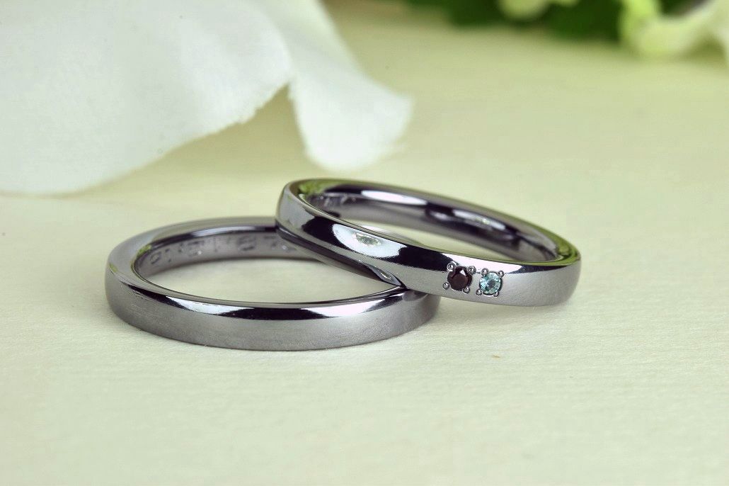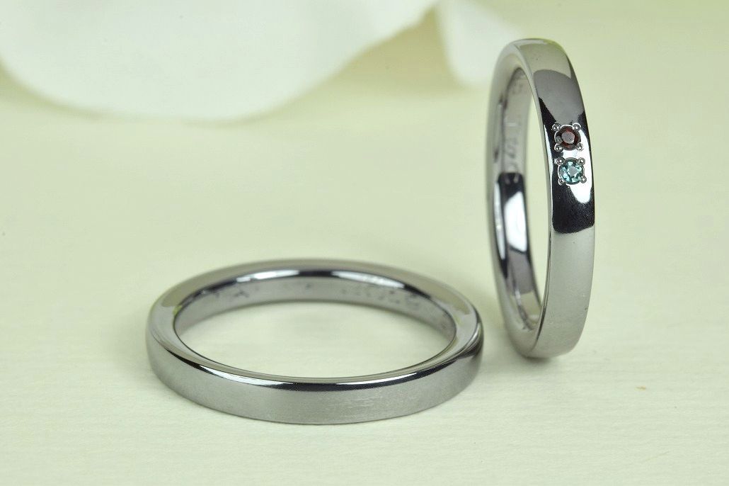 タンタル結婚指輪 アレキサンドライト&1月誕生石のガーネット