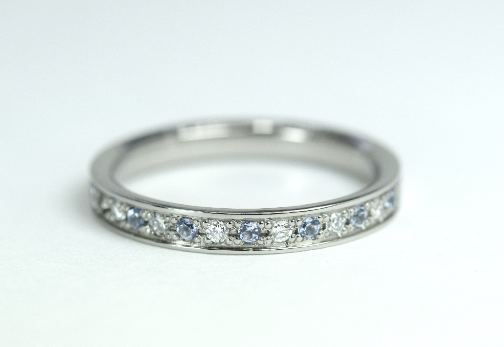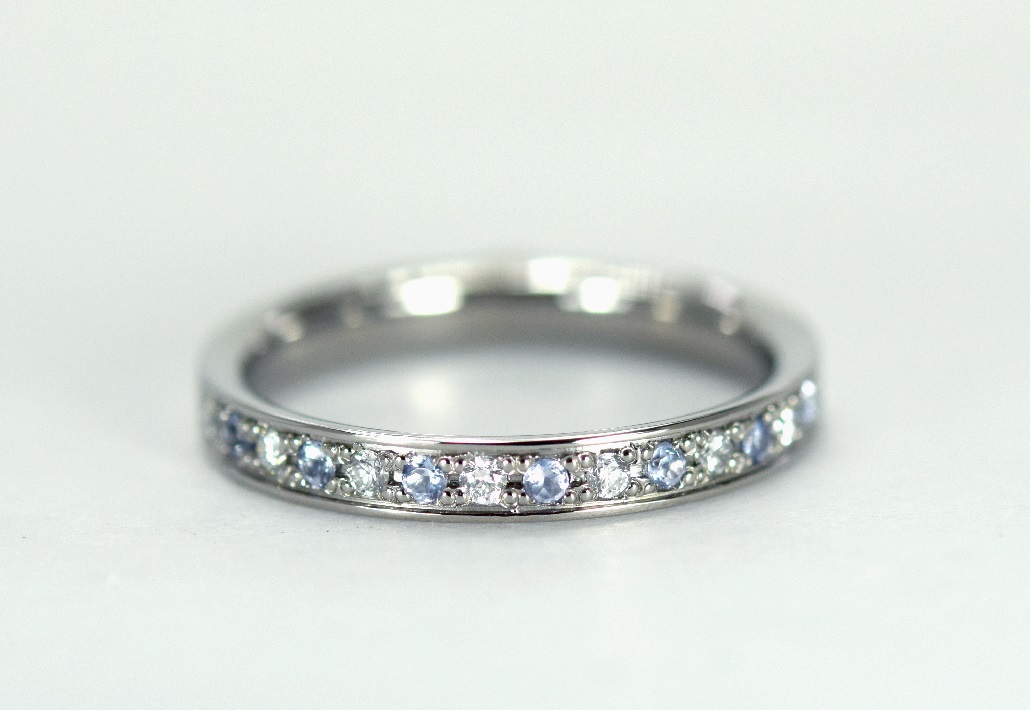 ダイヤとタンザナイトが交互にきらめくオンリーワン&アレルギーフリーのエタニティーリングが完成しました!