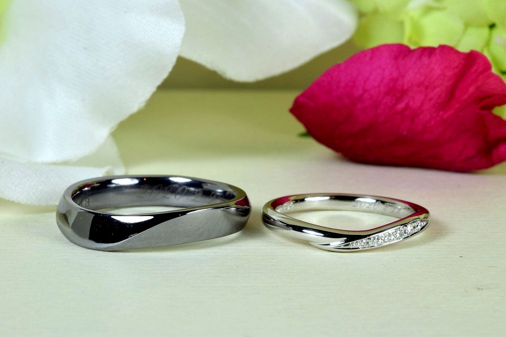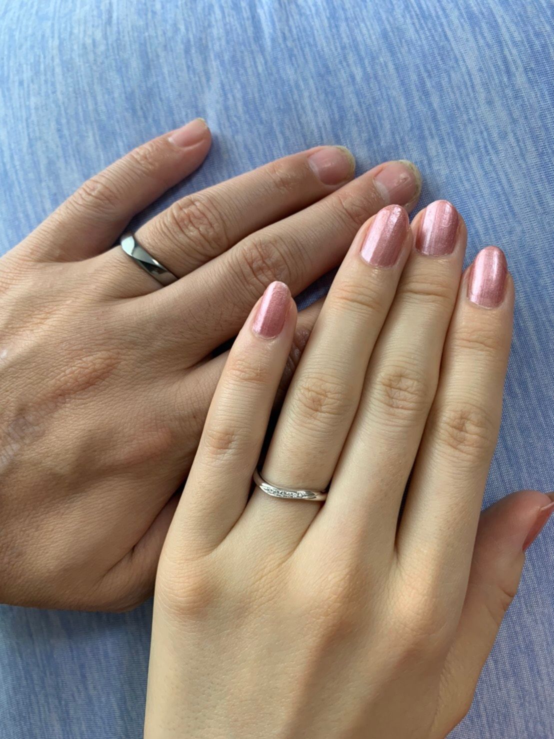 違う金属ですがデザインを揃えてお二人とも満足です。