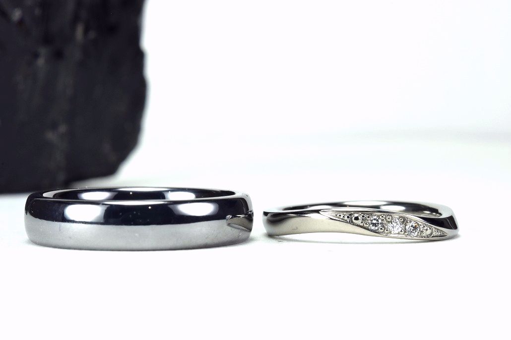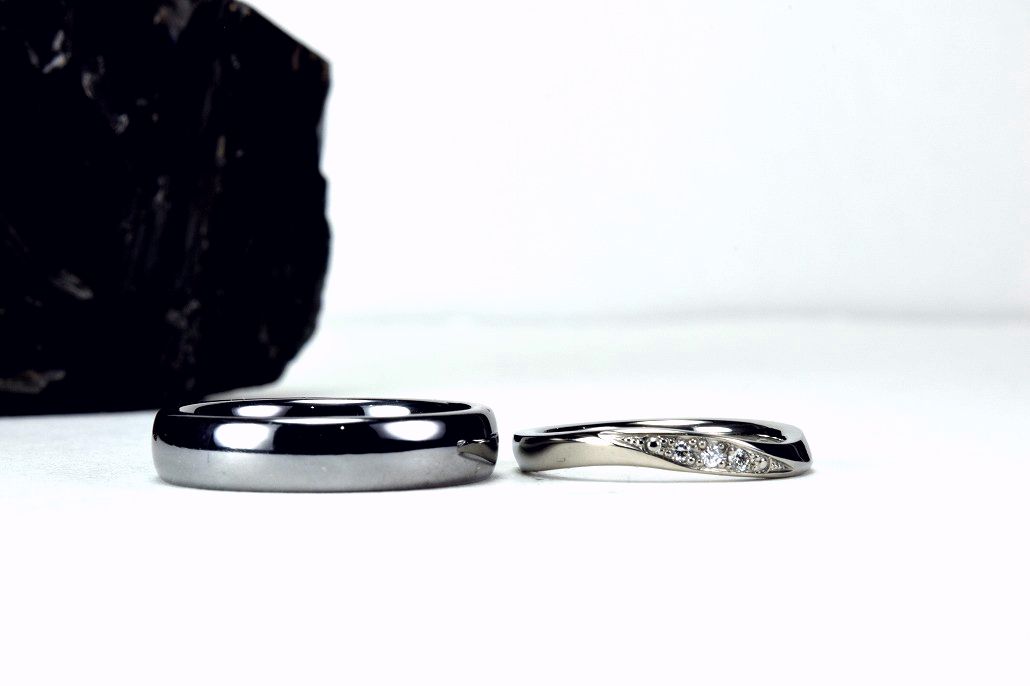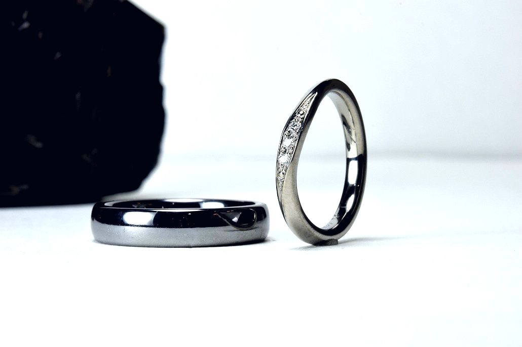 黒のタンタル&ジルコニウムダイヤ入り結婚指輪【O-MA-344】