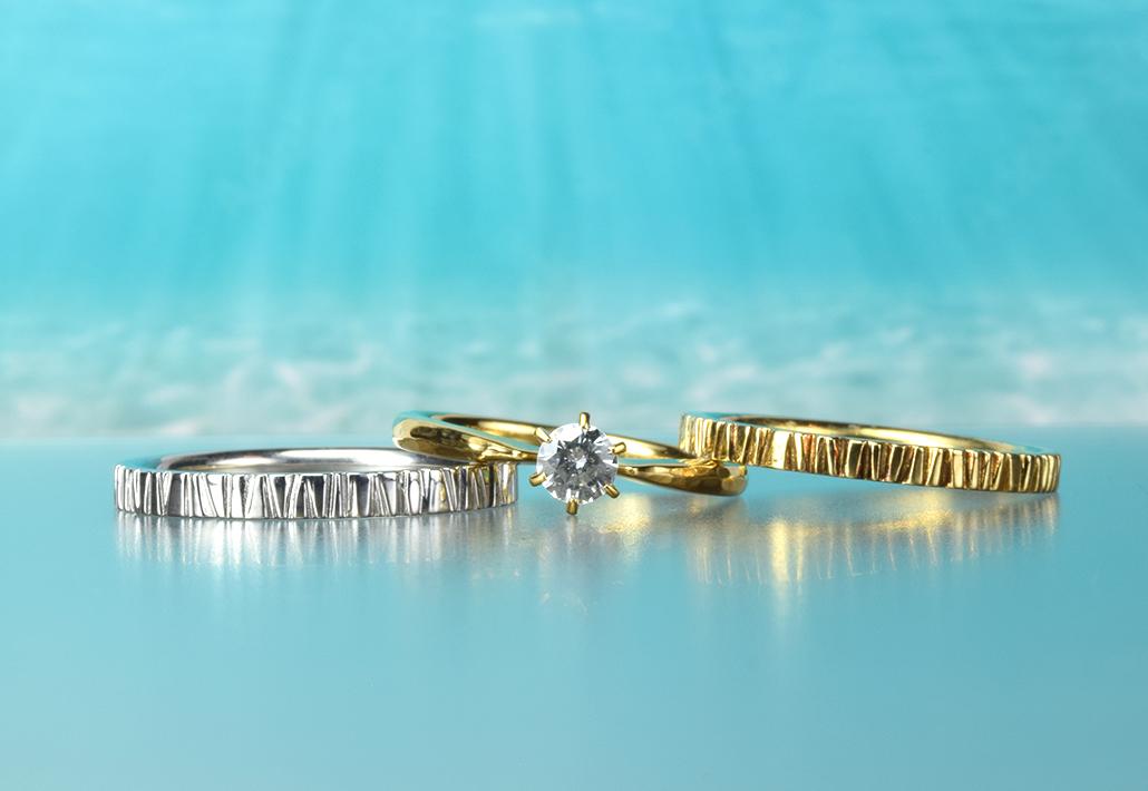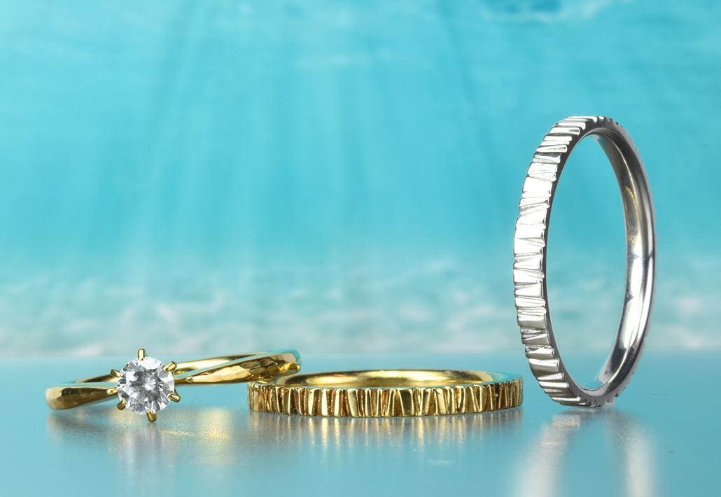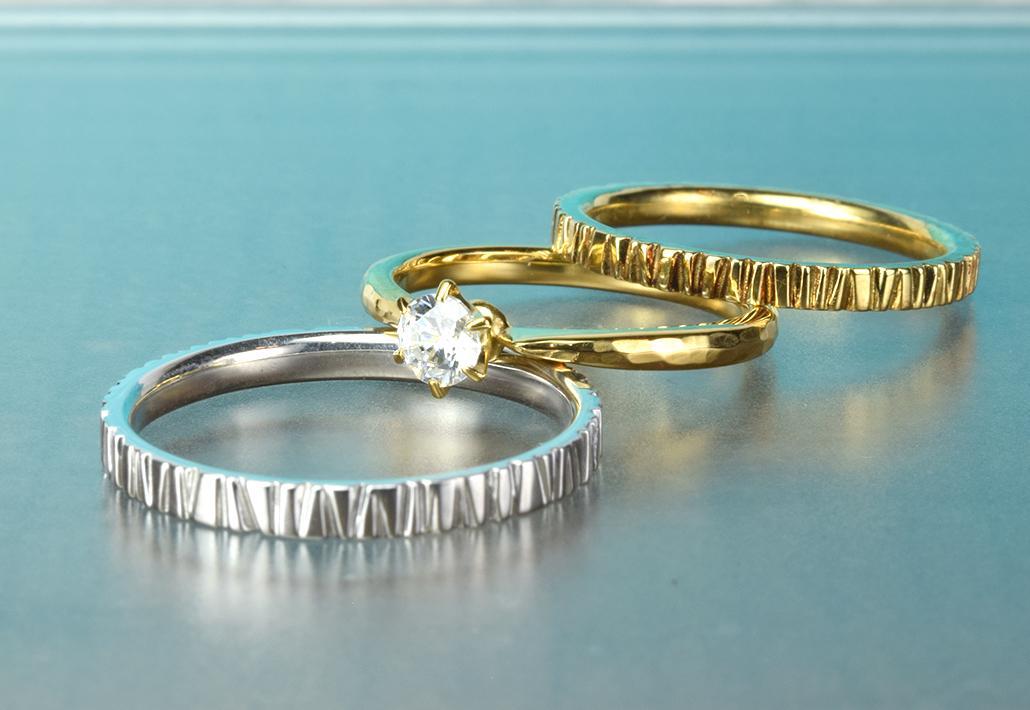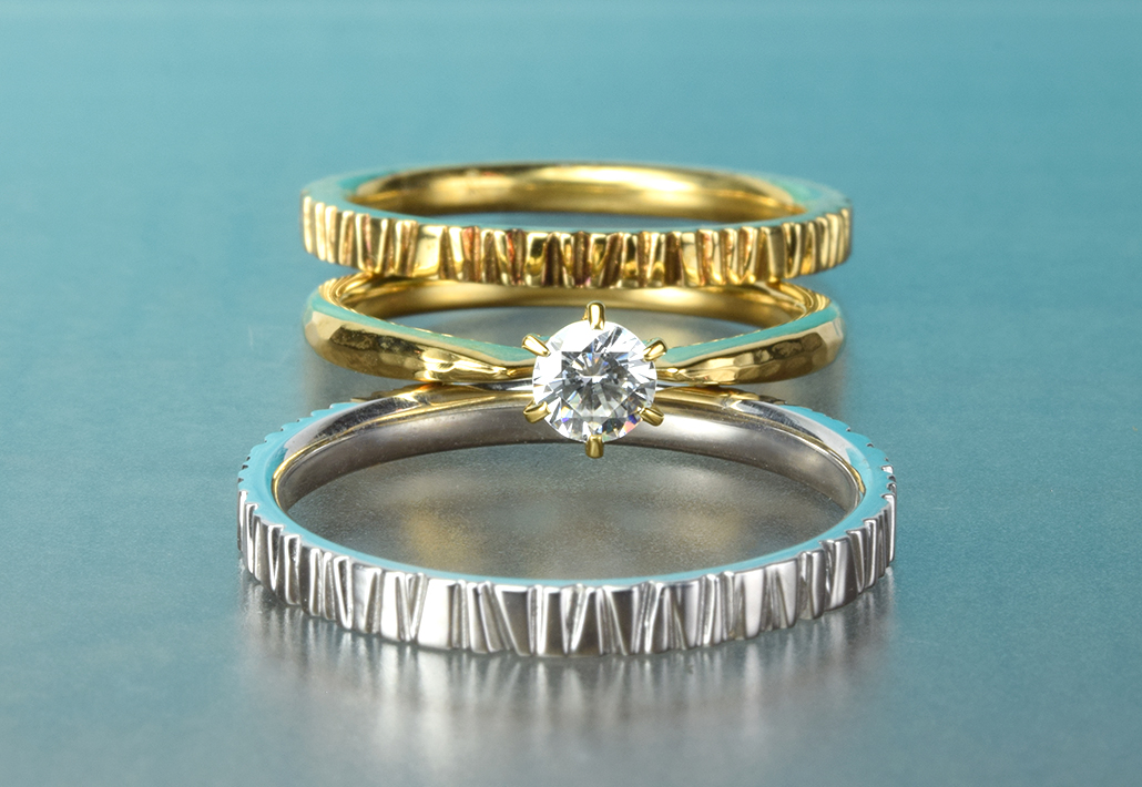 彫り込んだ線の重なりでカタチを描き出す絵画の技法<アシュール>を結婚指輪のデザインに。