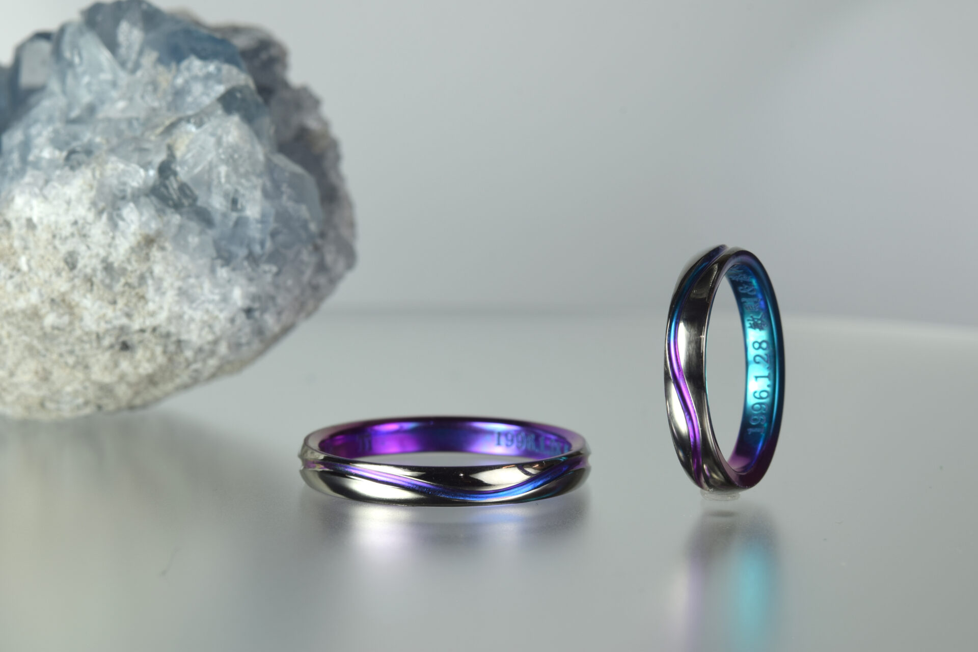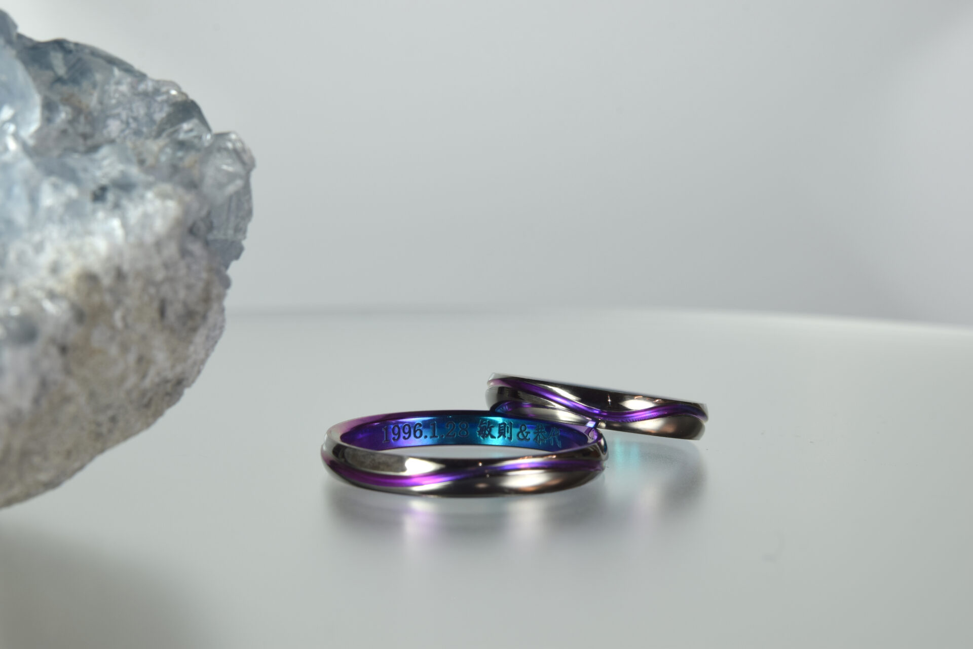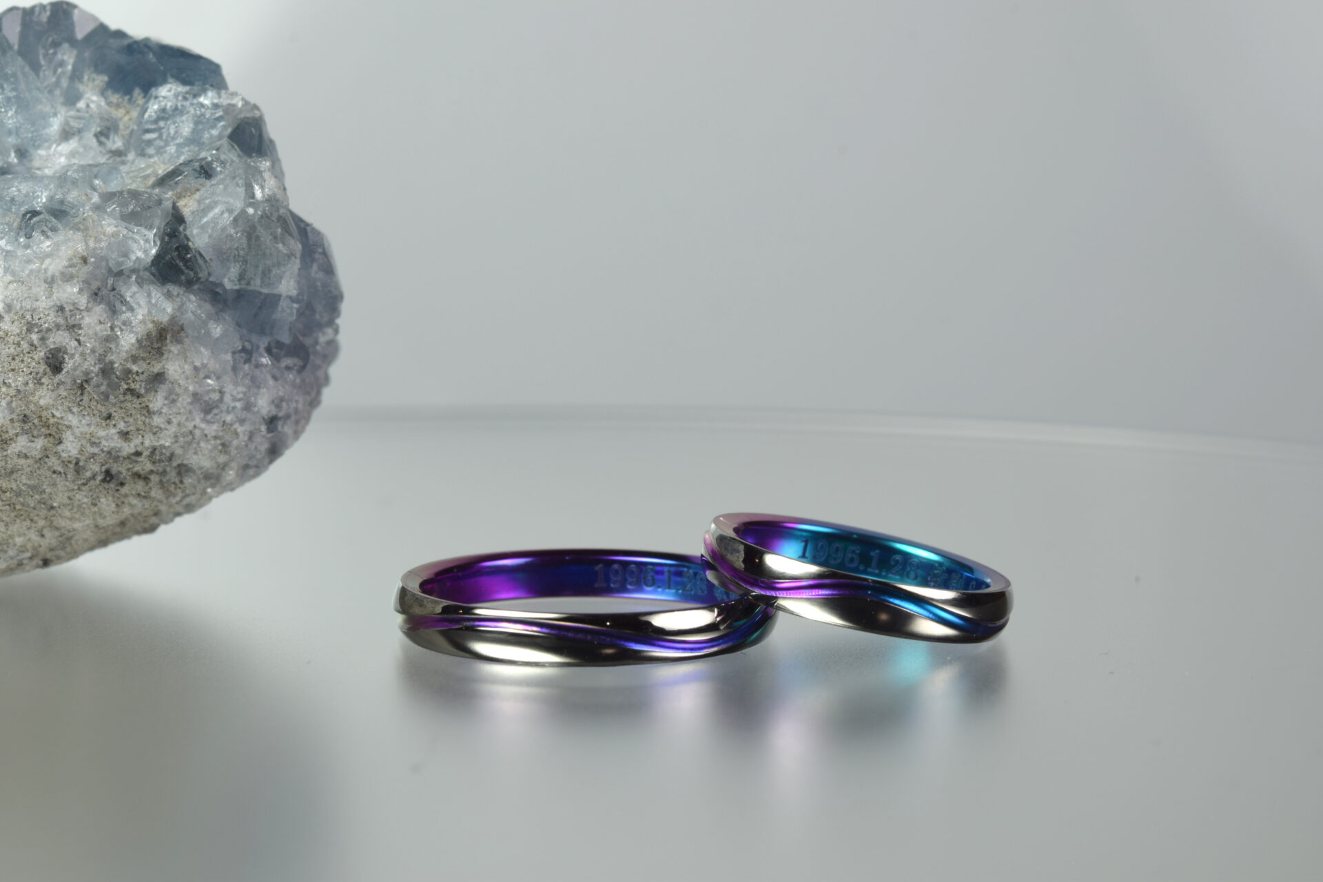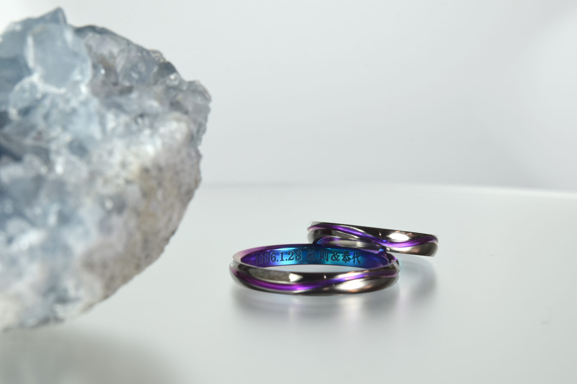 青と紫のチタン結婚指輪|一目ぼれでした。とラインからお問合せからのご注文でした。OR-1726