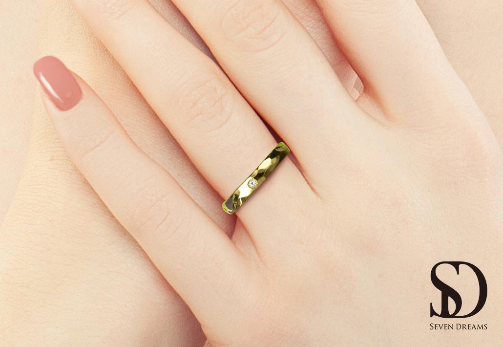 当社クラフトマンの伝統工芸<鎚起(ついき)技法>の経験を活かした<和の結婚指輪>シリーズ。<鎚起(ついき)とは鎚(つち)で打ち起(おこ)すという意味で、鎚=ハンマーでたたきながら金属をかたちづくるプロセスを表面に残したランダムな手作り感が魅力の一本。 たたき文様は、型を使ったコピーではなく、毎回手作業で付けられるため二つと同じものが出来ません。毎回ゼロから原型を起こして作られるオンリーワンの一本なのが嬉しい魅力。