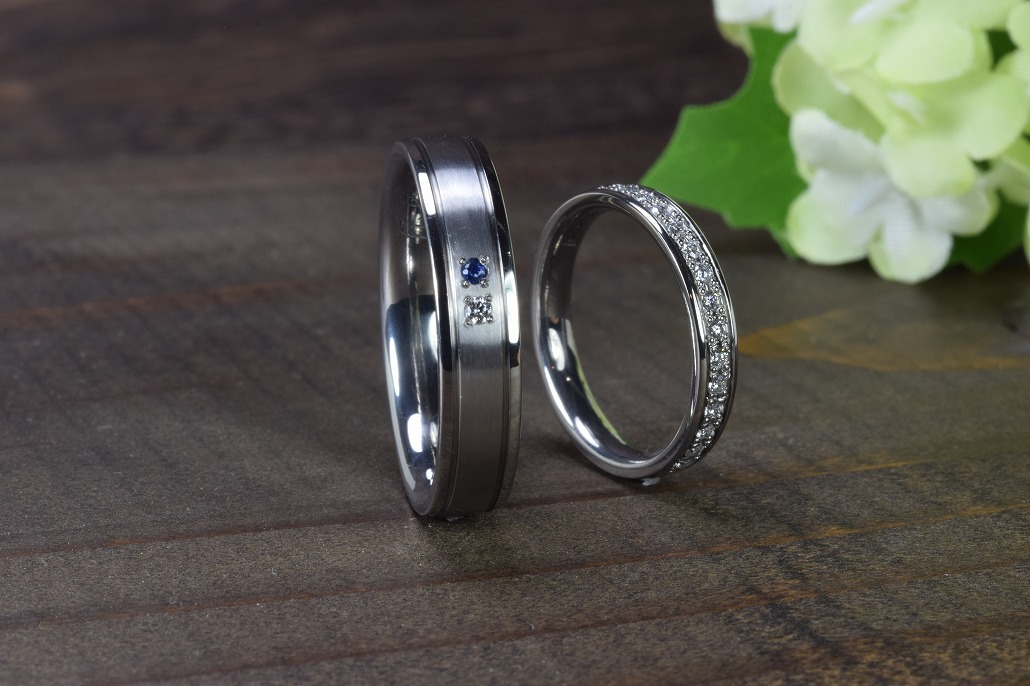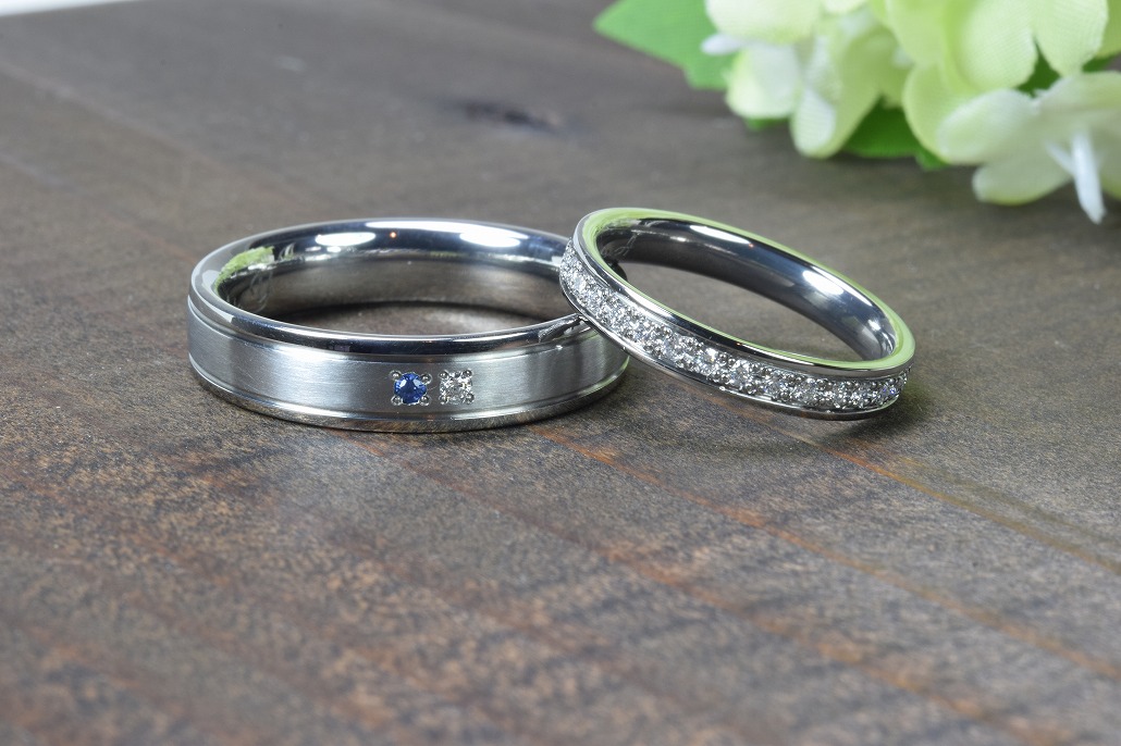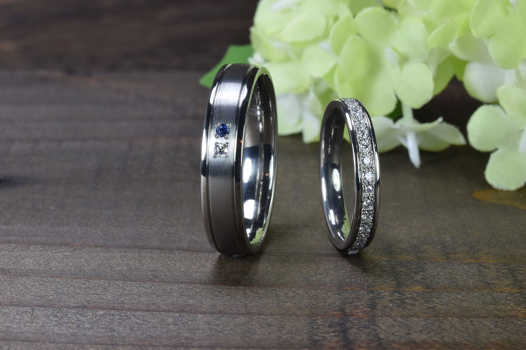 メンズ: 素材:ジルコニウム 使用石:ブラックダイヤ&ブルサファイア