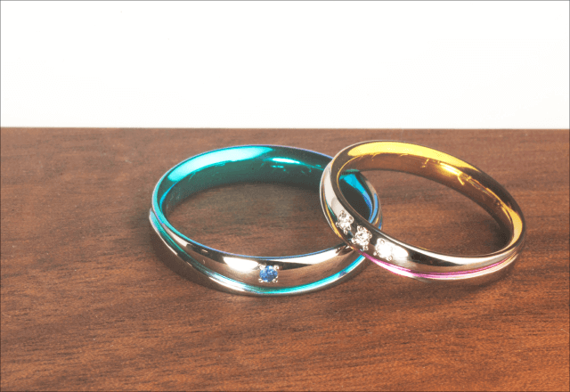 綺麗なチタンの焼き色のウエーブチタンマリッジリング