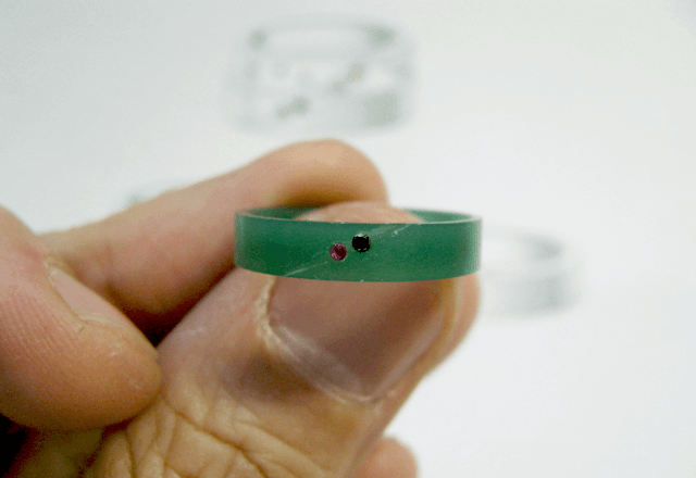メンズのリングは海を描きました。リングの半分を艶消しにするとで