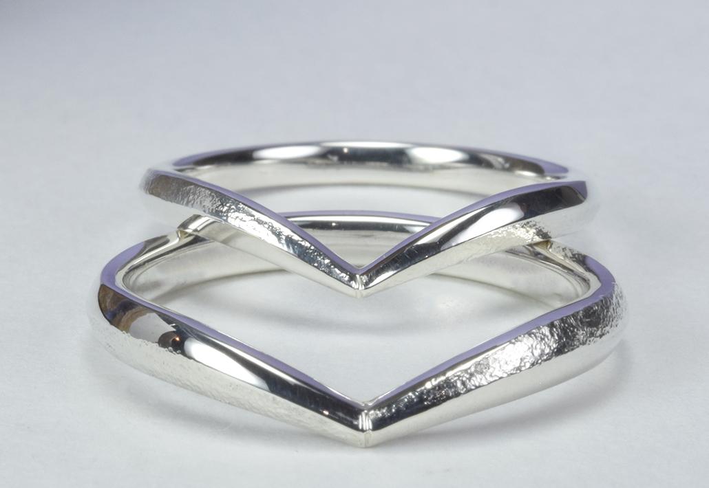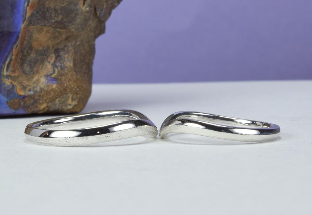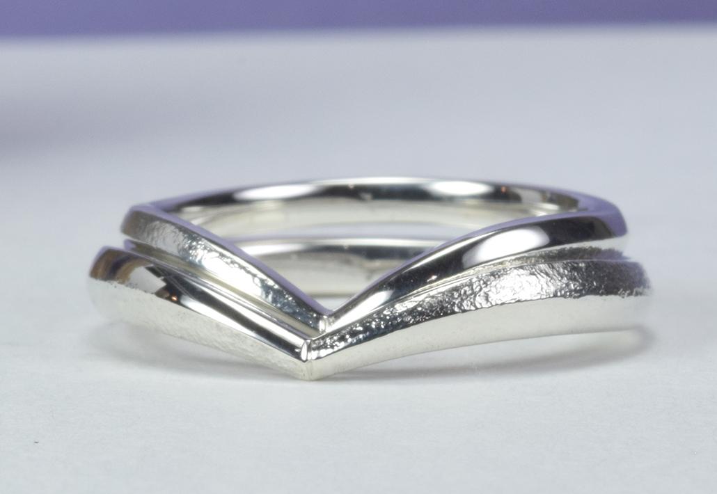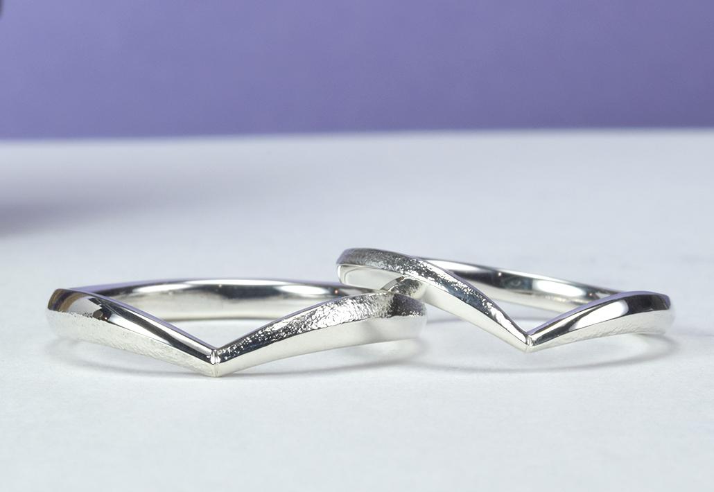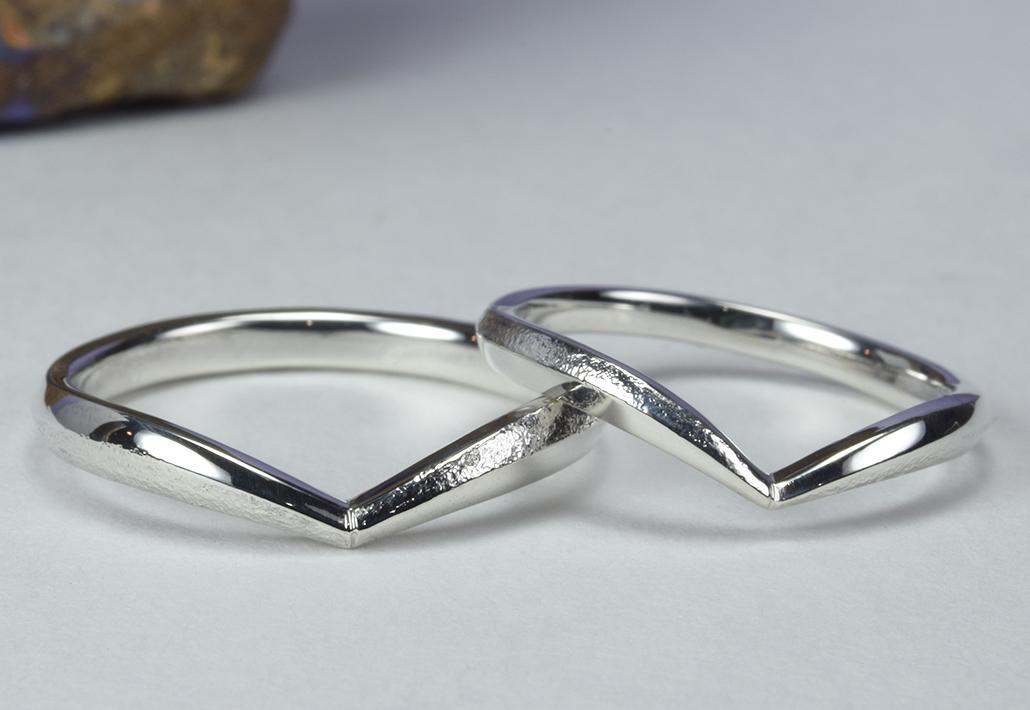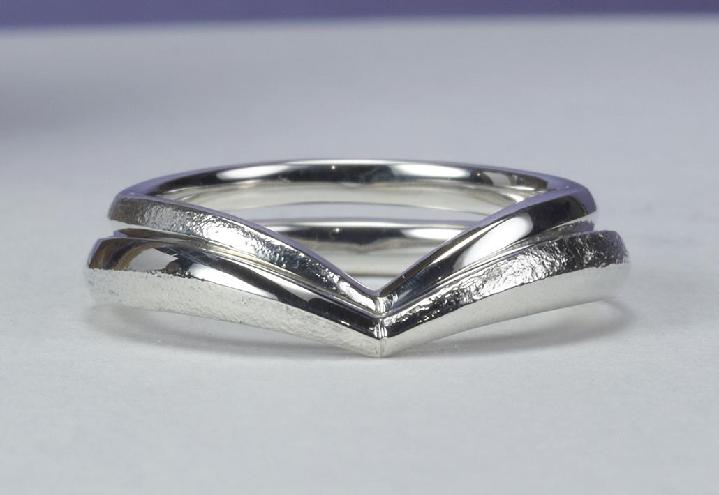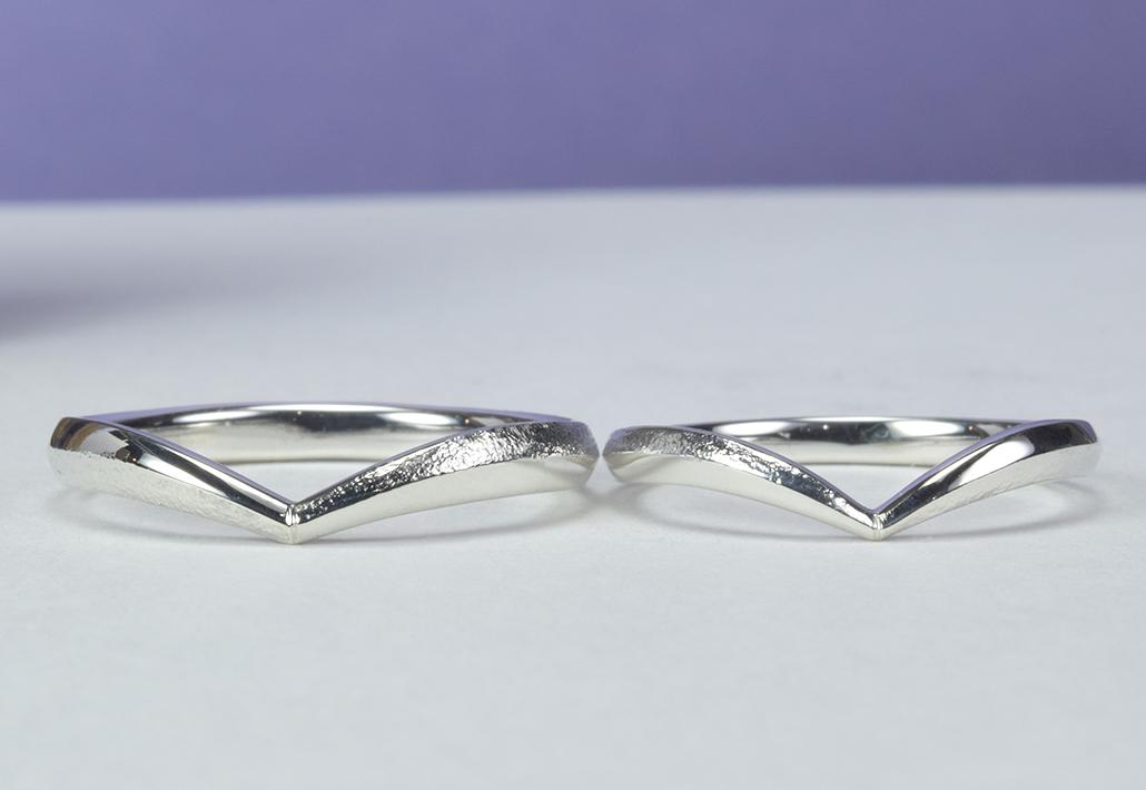 オリジナル結婚指輪(マリッジリング)指が長く見えるシリーズ Vシェイプ/ハーフ <石目&ミラー> MG-096