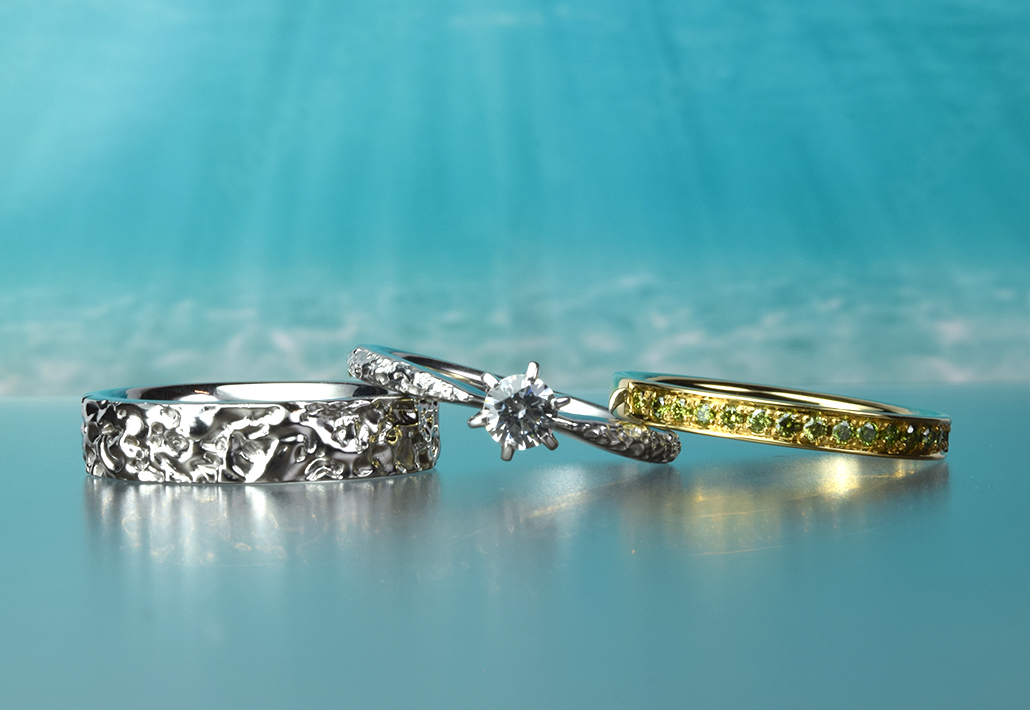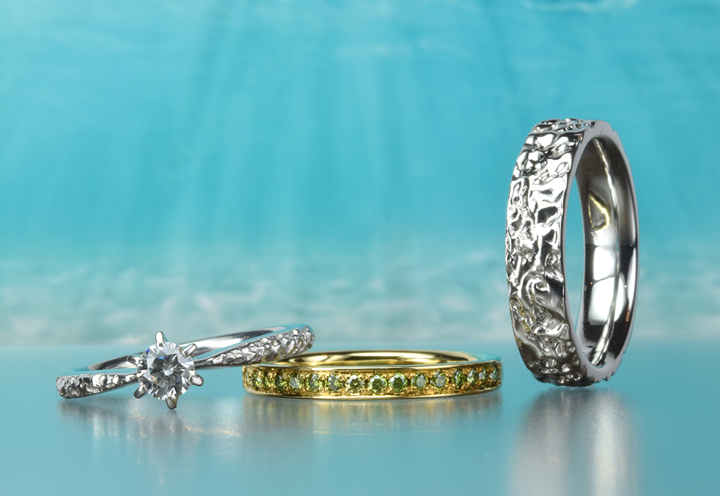 お二人のリングを、安心感を触れる指先に伝えてくれる存在にしてみたい。そんな願いが発展して生まれたのがこのリングなんです。