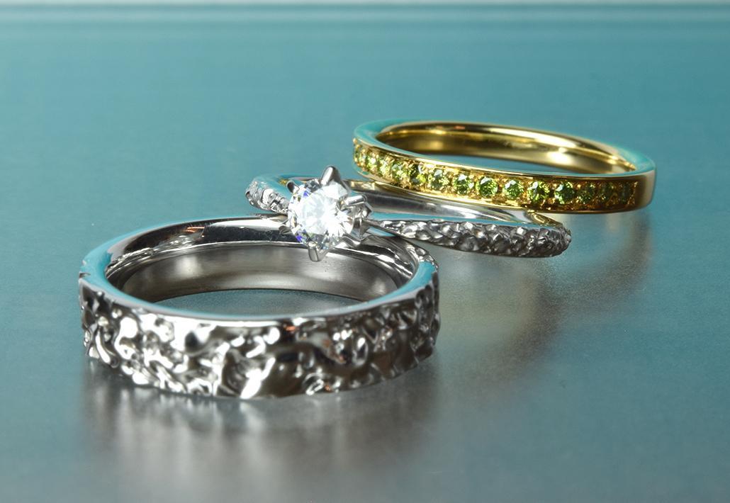 〇リングの表面とリングの内側にお二人の誕生石やダイヤモンドの追加が可能です。