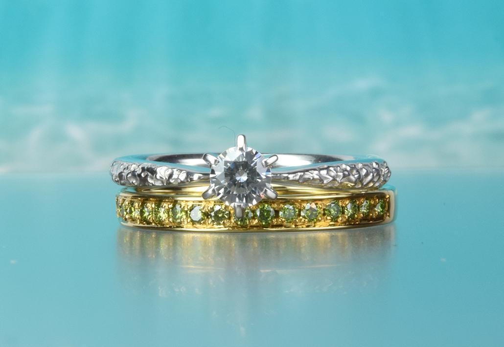 婚約指輪&結婚指輪セット|¥381,600~ アース柄&人気のグリーンダイヤエタニティーリング TS-005