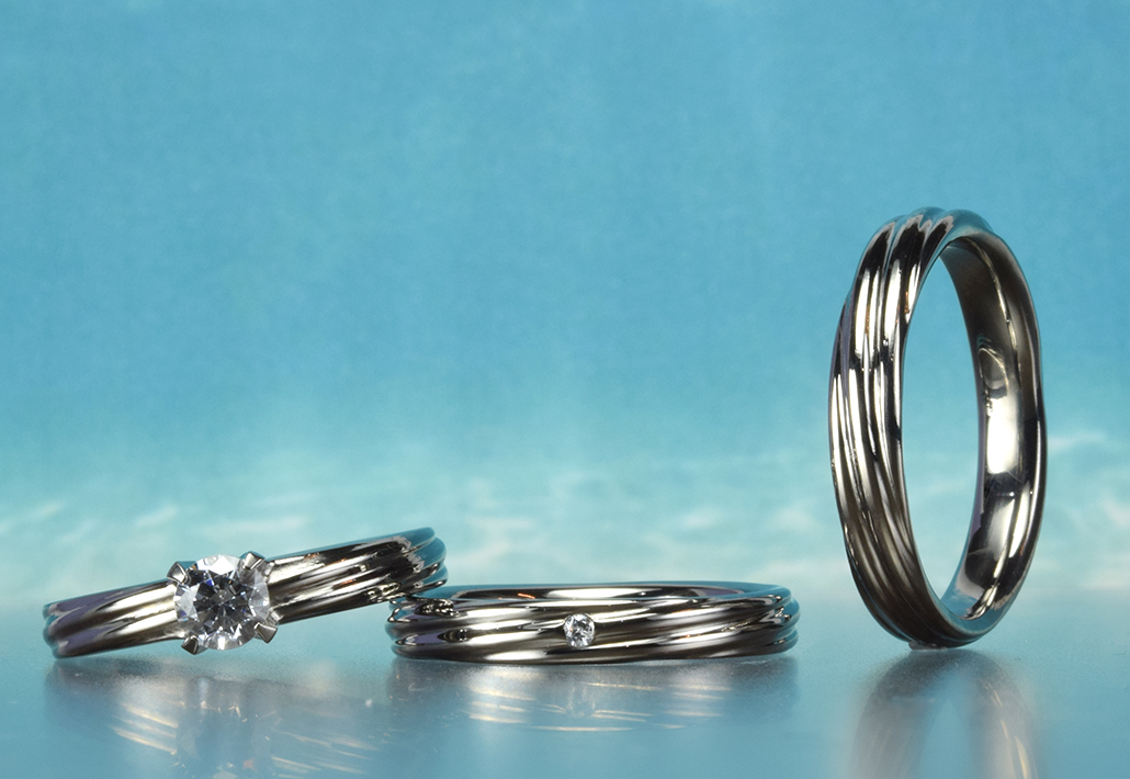 細い糸が紡がれて、ひとつのリングをかたちづくるデザインは、時を重ねるほど深まる絆のイメージです。
