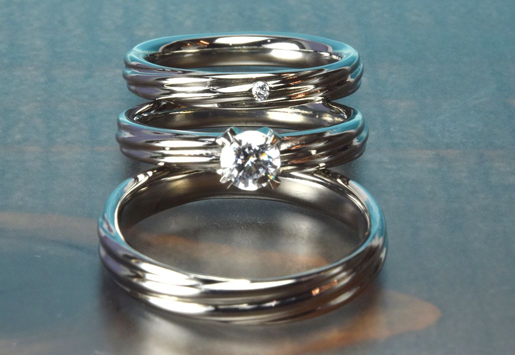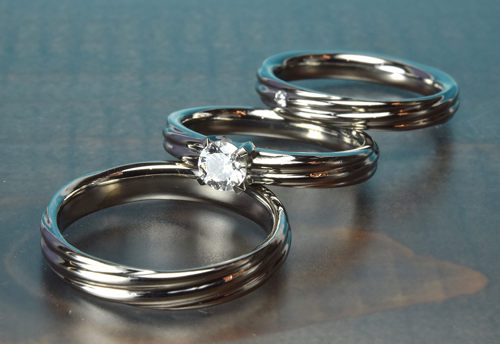 〇リングの表面とリングの内側にお二人の誕生石やダイヤモンドの追加が可能です。
