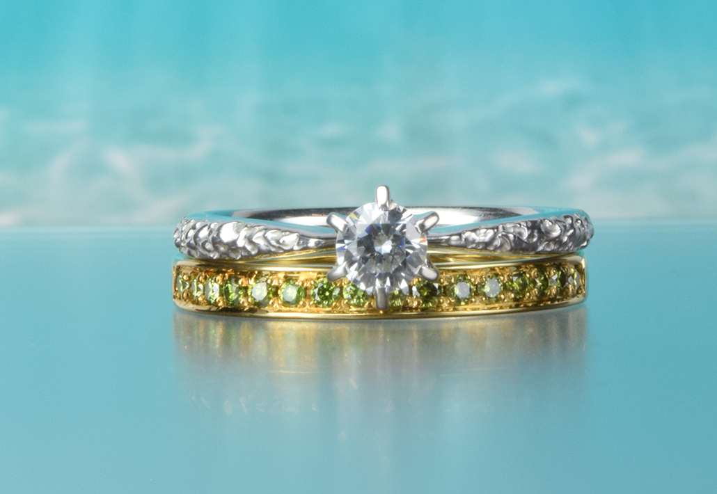 婚約指輪&K18結婚指輪セット|¥381,600~アース柄&人気のグリーンダイヤエタニティーリング TS-006