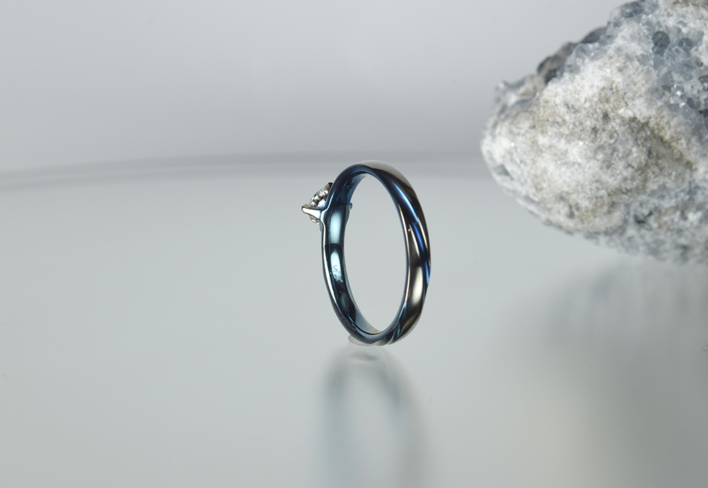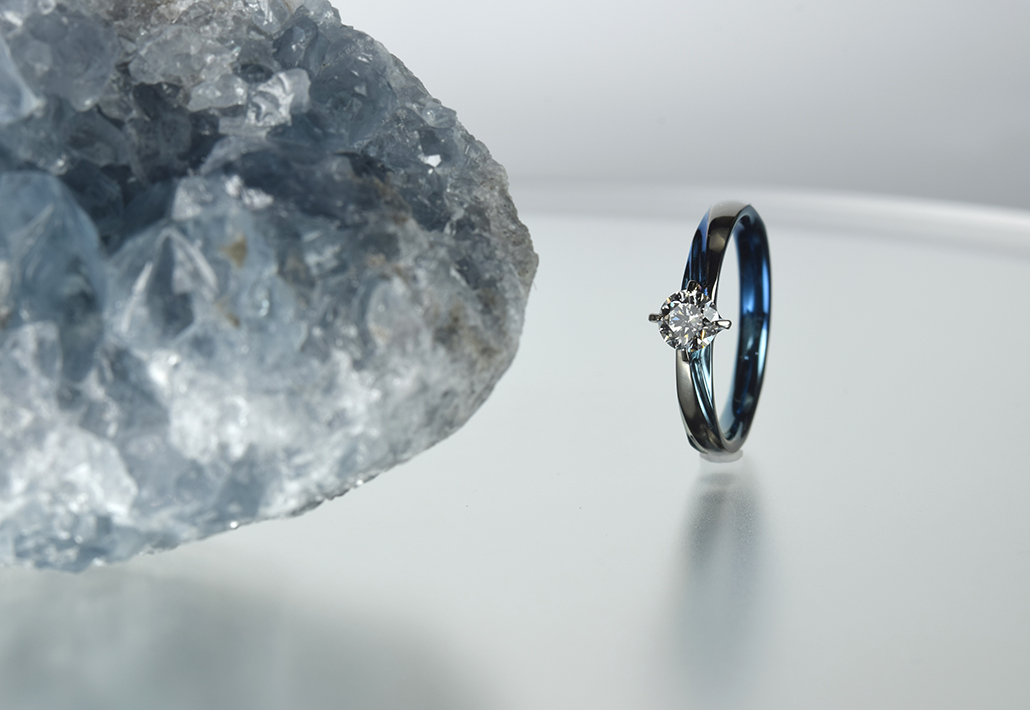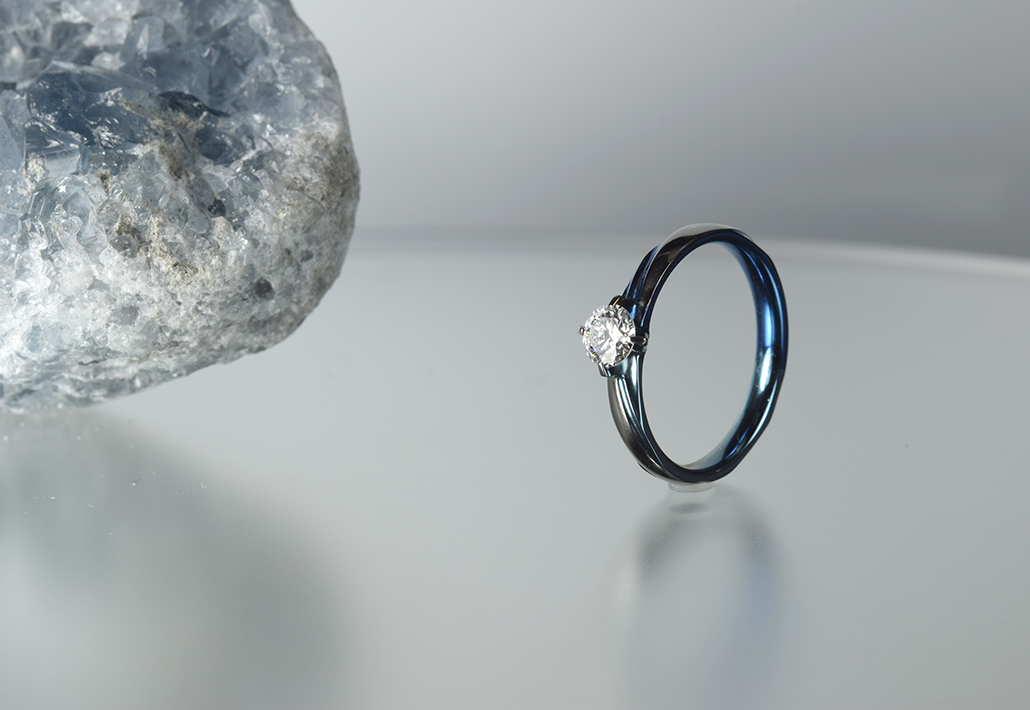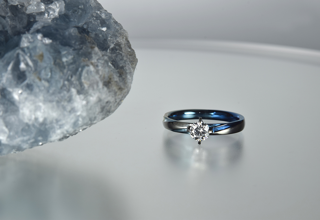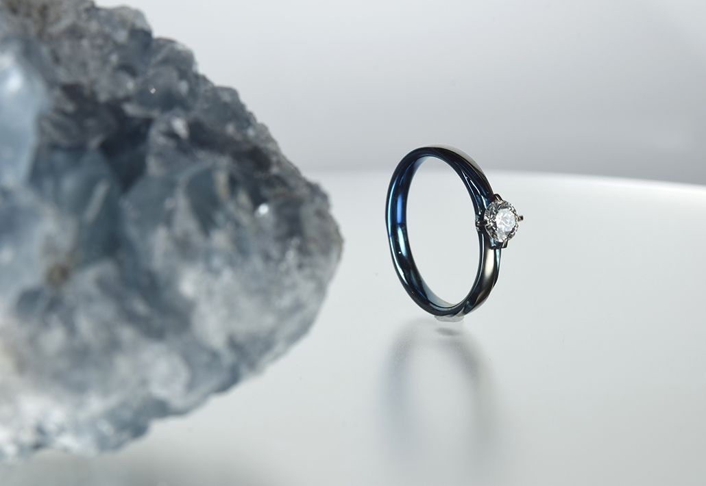 ジルコニウム婚約指輪|金属アレルギー対応 青いカラーリング