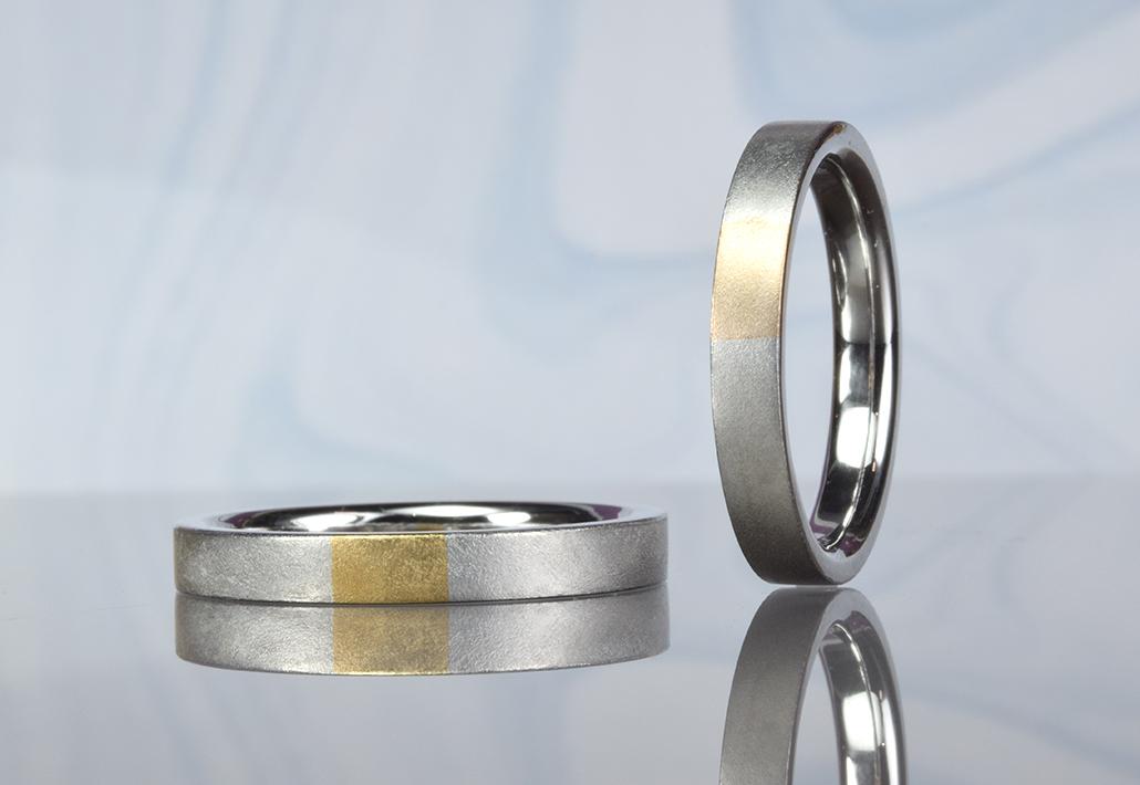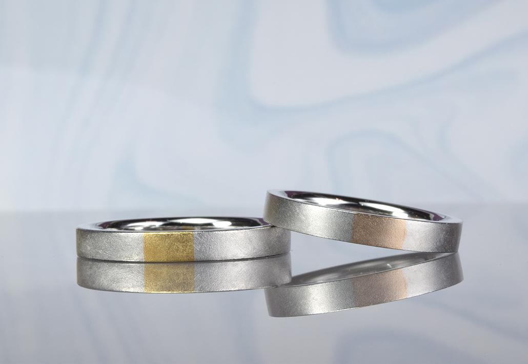 プラチナ&K18 艶消し結婚指輪|インレイ/Inlay <日本工芸品の象嵌(ぞうがん)>サテン模様で高級感のリング。 MG-143