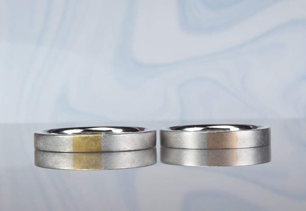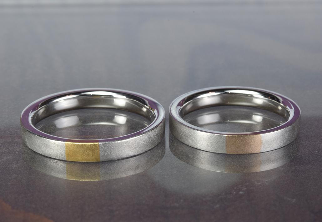彼のリングはプラチナベースのピンクゴールド埋め込み。