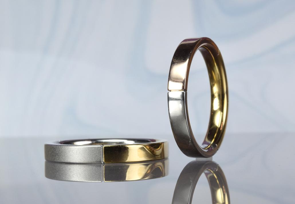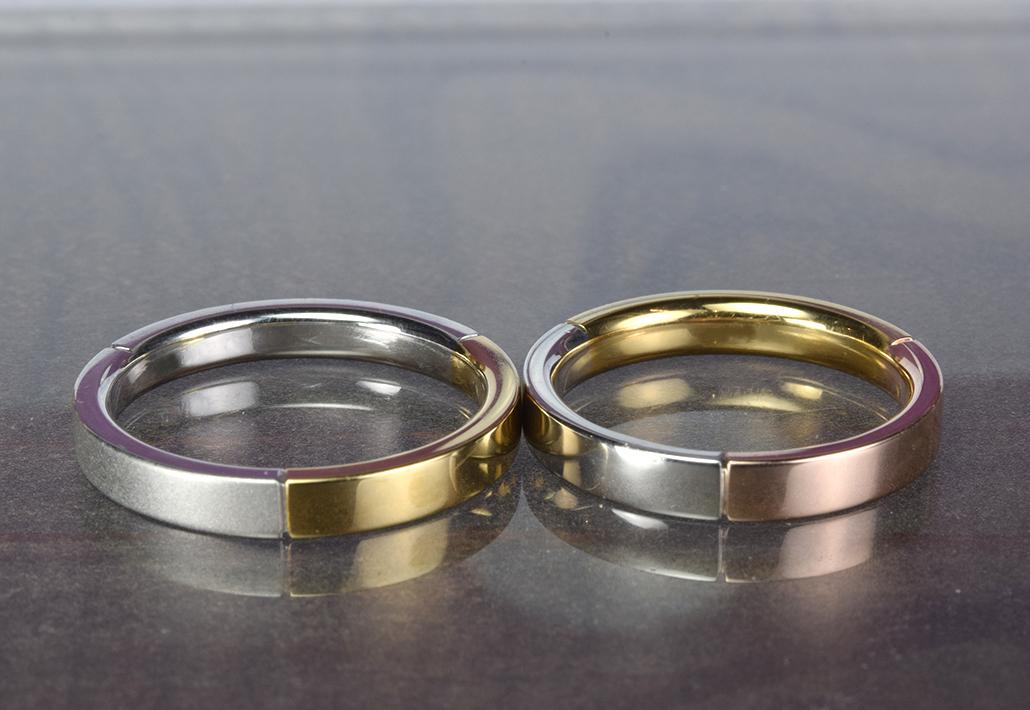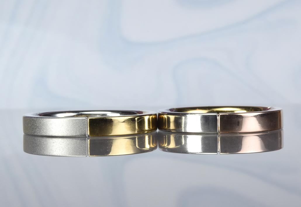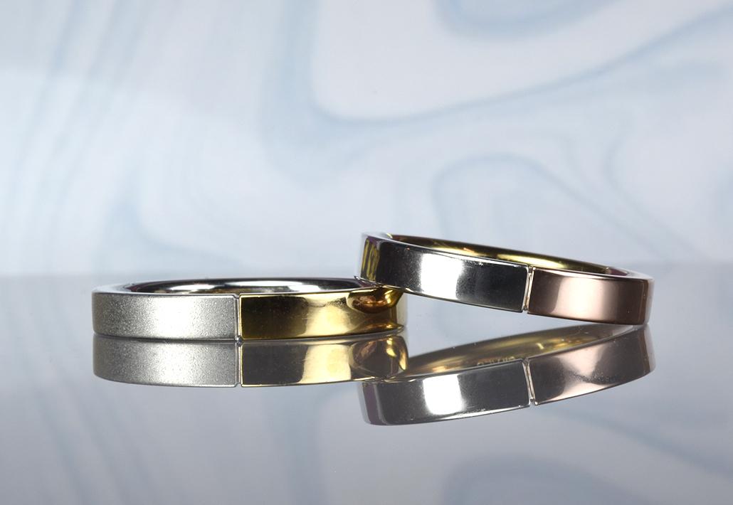 オリジナル結婚指輪|三面それぞれ別の素材×テクスチュアが選べるマリッジ~素心/スリーフェイス MG-148
