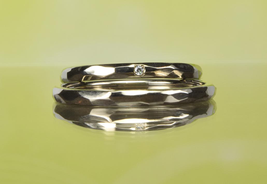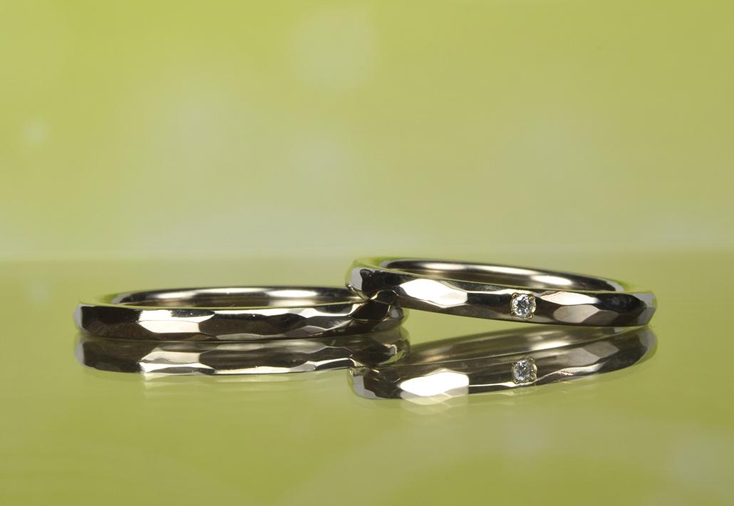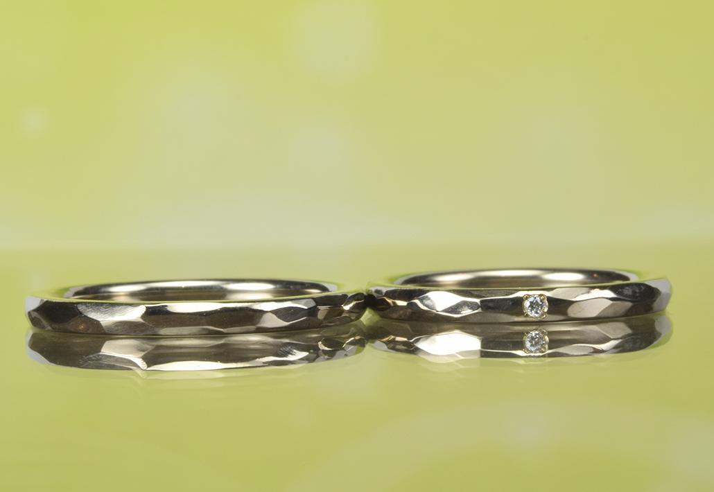 結婚指輪|シャンパンゴールドのほんのりイエローが目に柔らかく。~つちめ・ラフ2㎜幅ペア 【MG-153】
