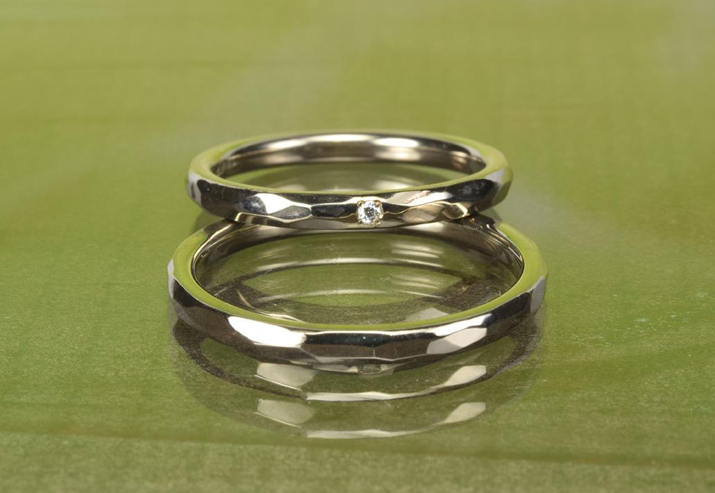 今回は、2mm幅の細目のラウンド(丸い)アームに、横長のつち目をダイナミックに施しました。